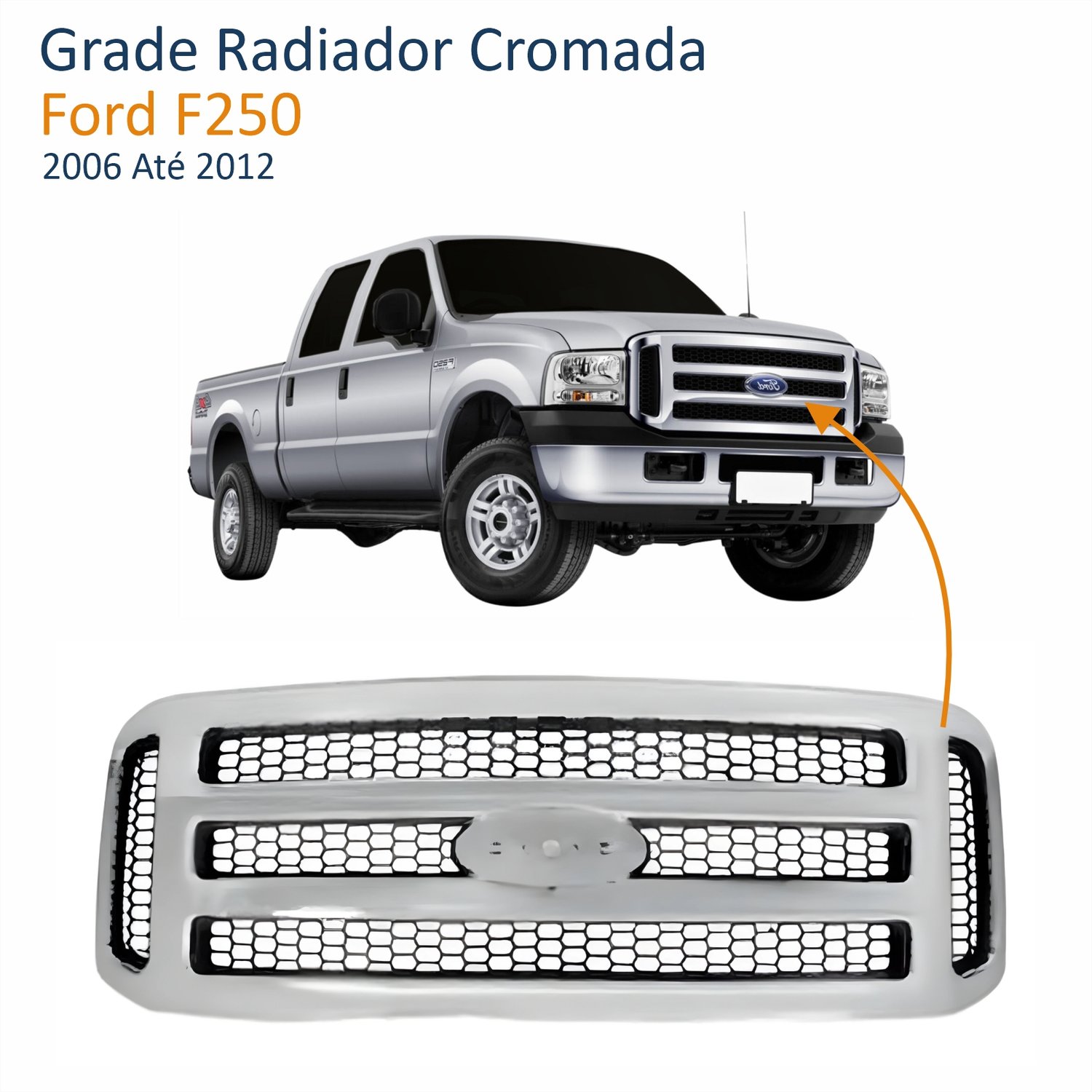Grade Radiador Ford F250 2006 até 2012 Cromada