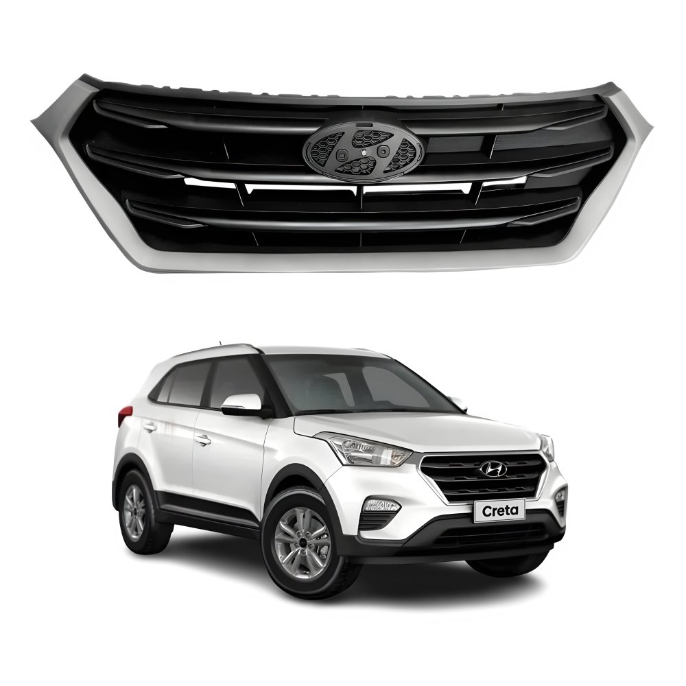 Grade Radiador Hyundai Creta 2020 Até 2022 Preta Com Moldura Prata