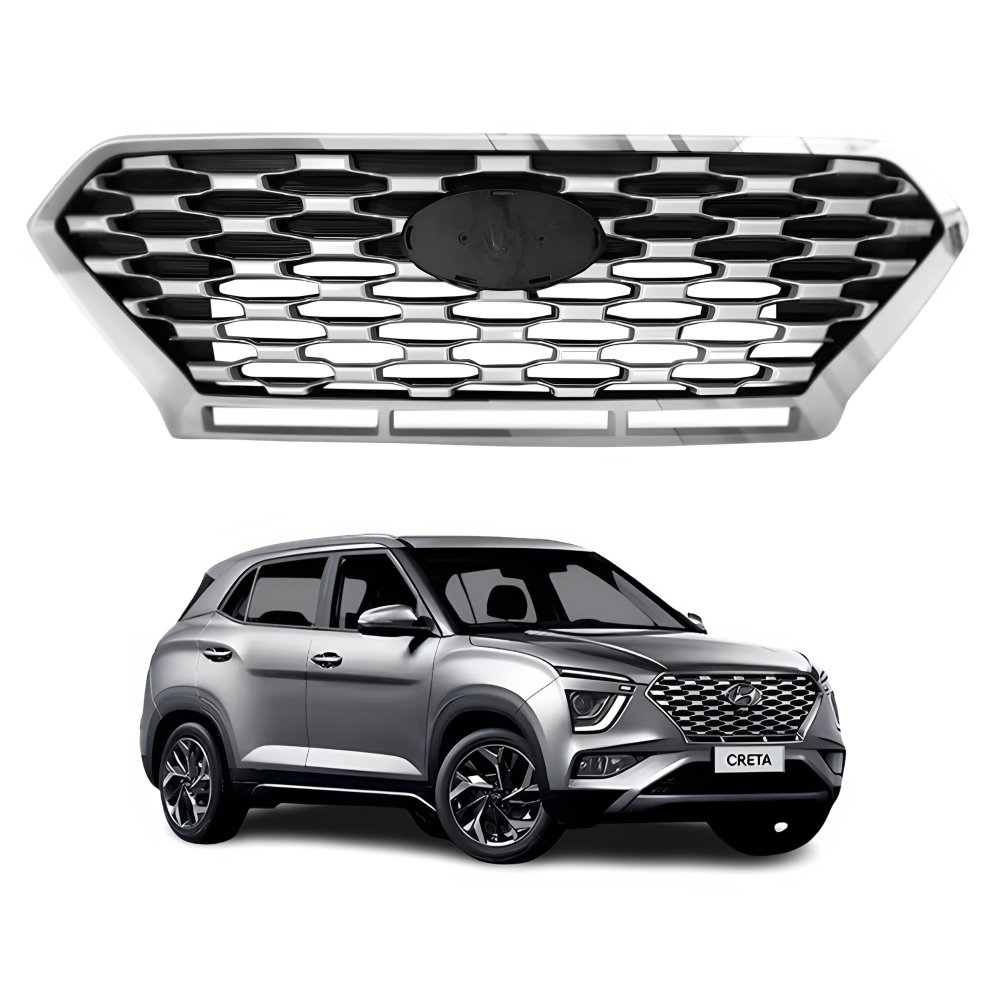 Grade Radiador Hyundai Creta 2023 Até 2024 Prata Com Moldura Cromada