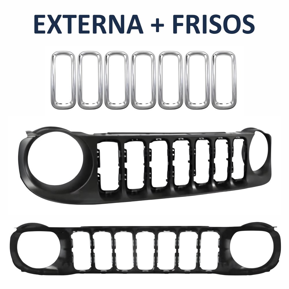 Grade Radiador Jeep Renegade 2015 Até 2018 Com Frisos Cromados - Completa