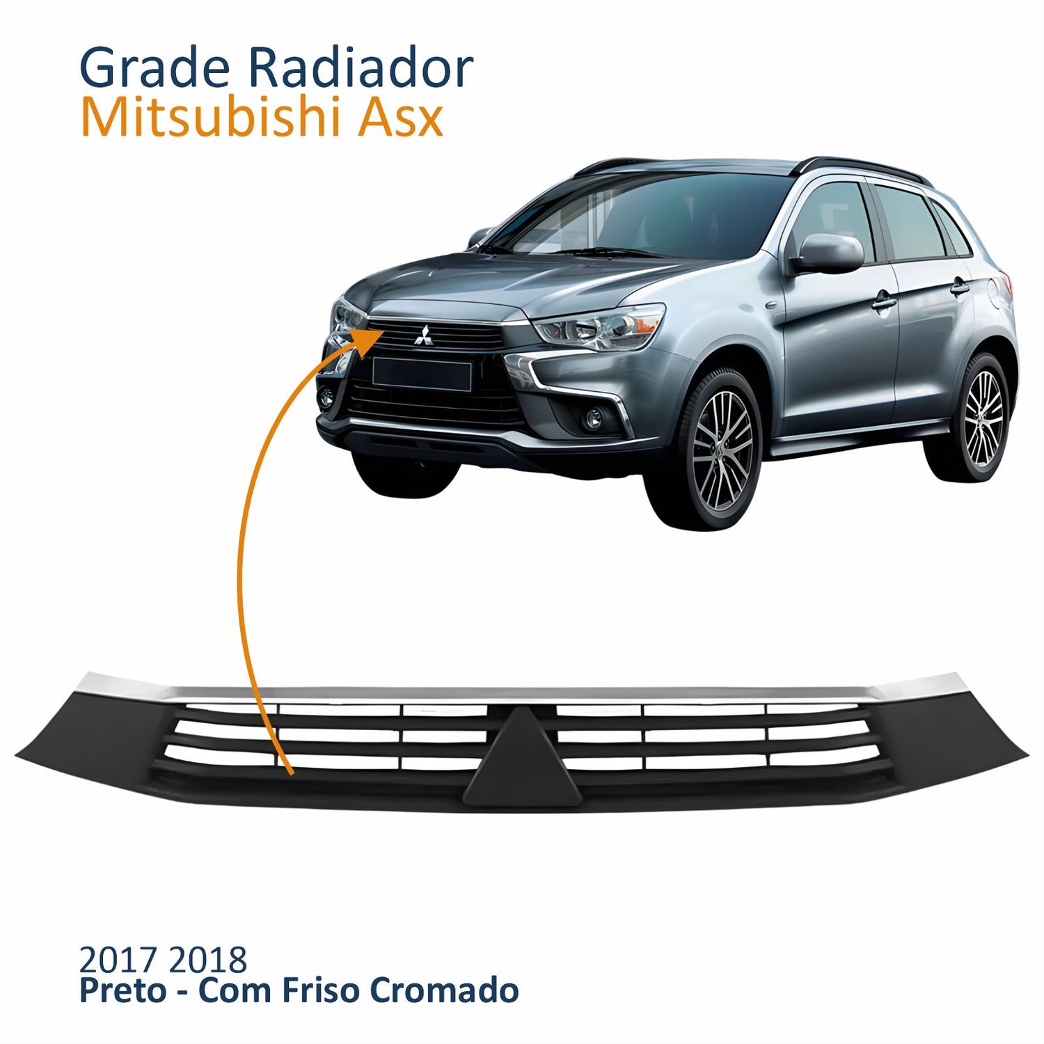 Grade Radiador Mitsubishi Asx 2017 2018 Preta Com Friso Cromado