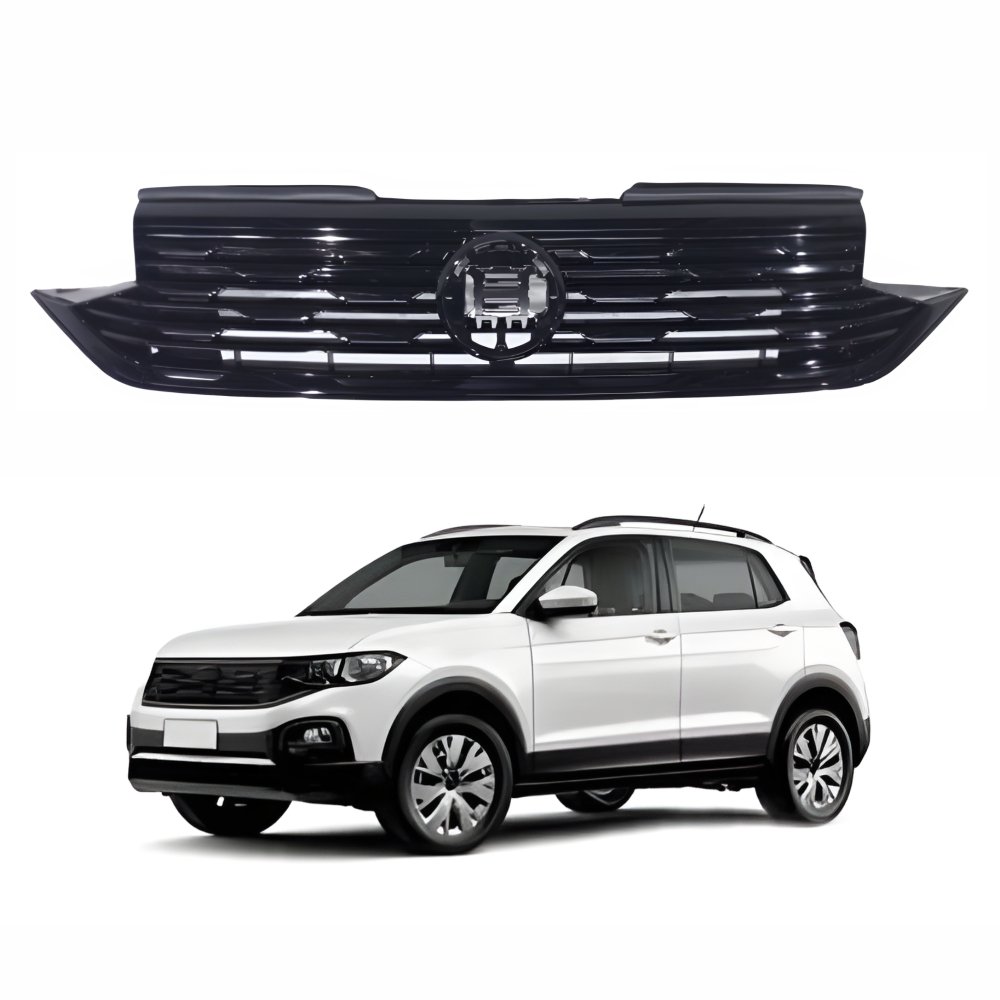 Grade Radiador Vw T-Cross 2019 Até 2023 Black Piano Com Detalhes e Friso Black Piano