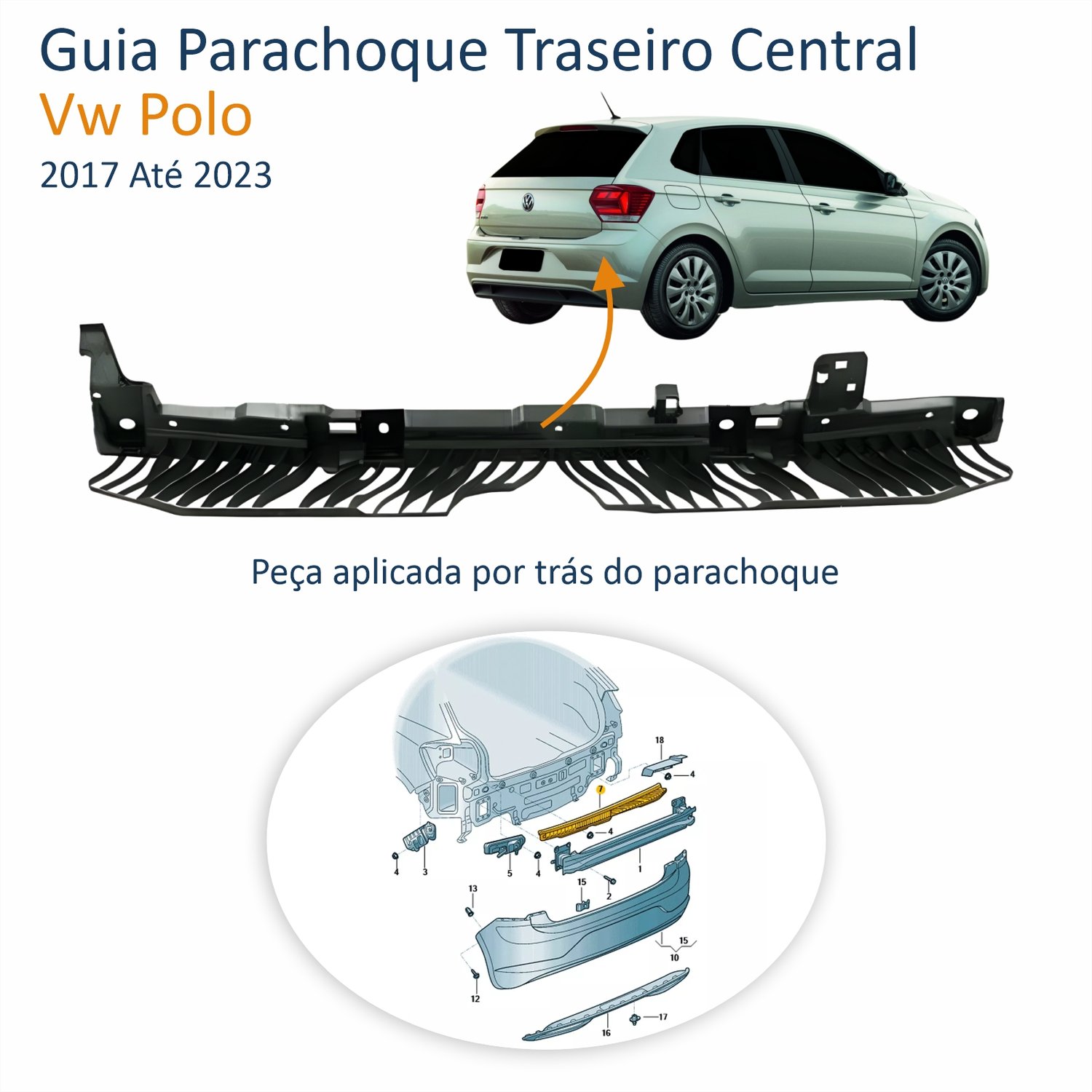 Guia Parachoque Traseiro Vw Polo 2017 Até 2023 Central