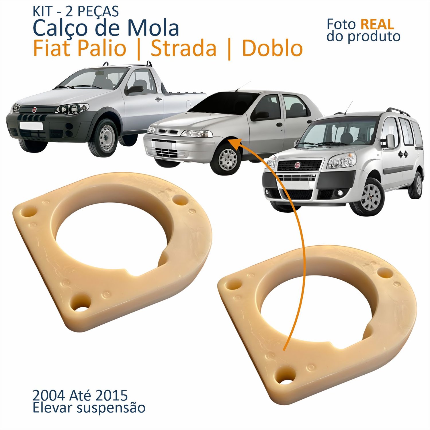 Kit Calço de Mola Fiat Doblo Palio Strada 2004 Até 2015 Dianteiro 2 Peças