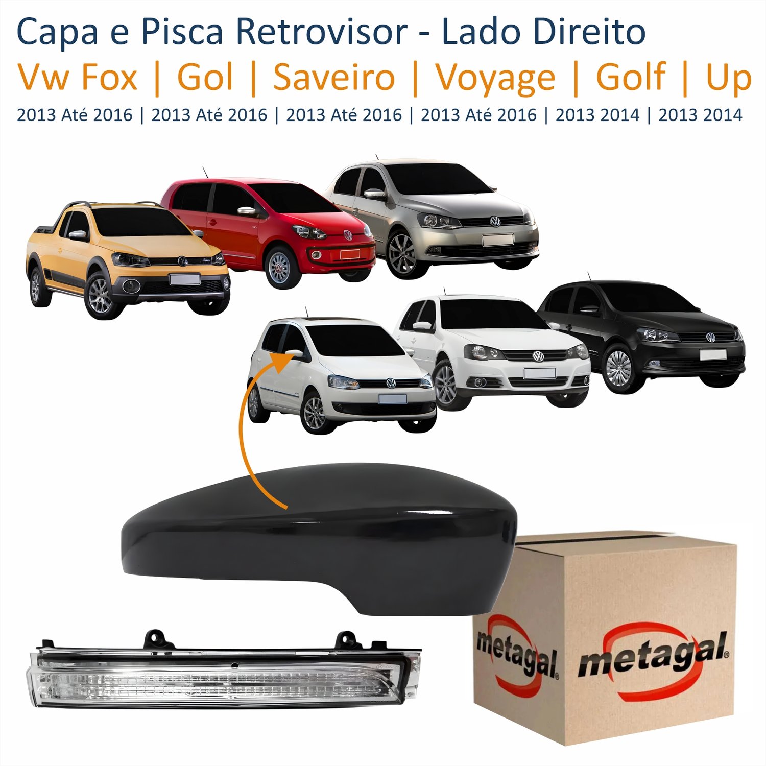 Kit Capa Com Pisca Retrovisor Vw Fox Gol Saveiro Voyage 2013 Até 2016 Golf Up 2013 2014 Liso Lado Direito Passageiro