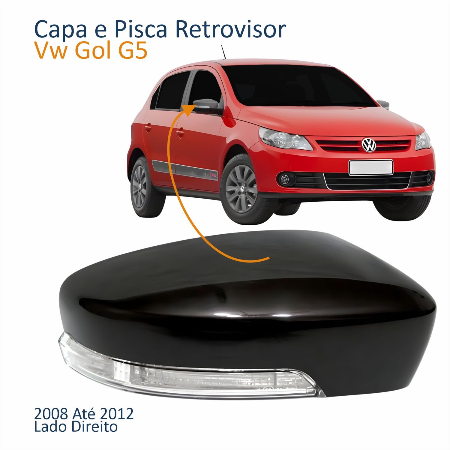 Kit Capa Com Pisca Retrovisor Vw Gol 2008 2009 2010 2011 2012 Liso Lado Direito Passageiro