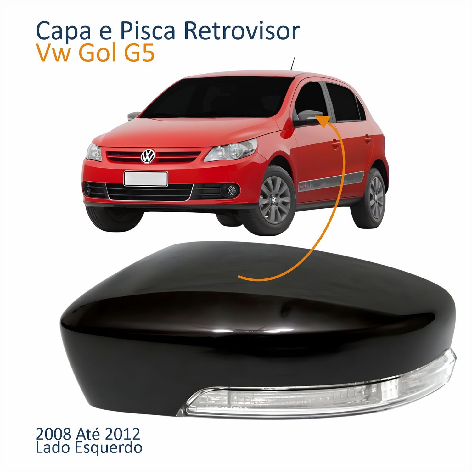 Kit Capa Com Pisca Retrovisor Vw Gol G5 2008 2009 2010 2011 2012 Liso Lado Esquerdo Motorista