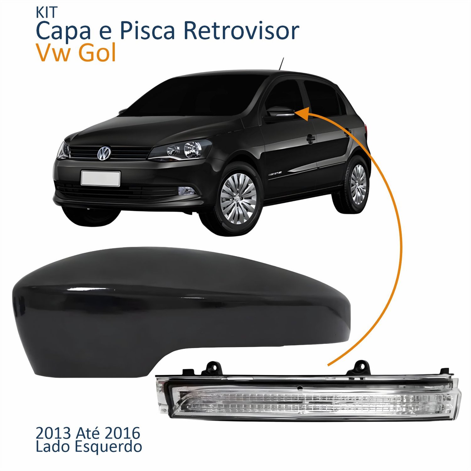 Kit Capa Com Pisca Retrovisor Vw Fox Gol Saveiro Voyage 2013 Até 2016 Golf Up 2013 2014 Liso Lado Esquerdo Motorista Quant: 1x