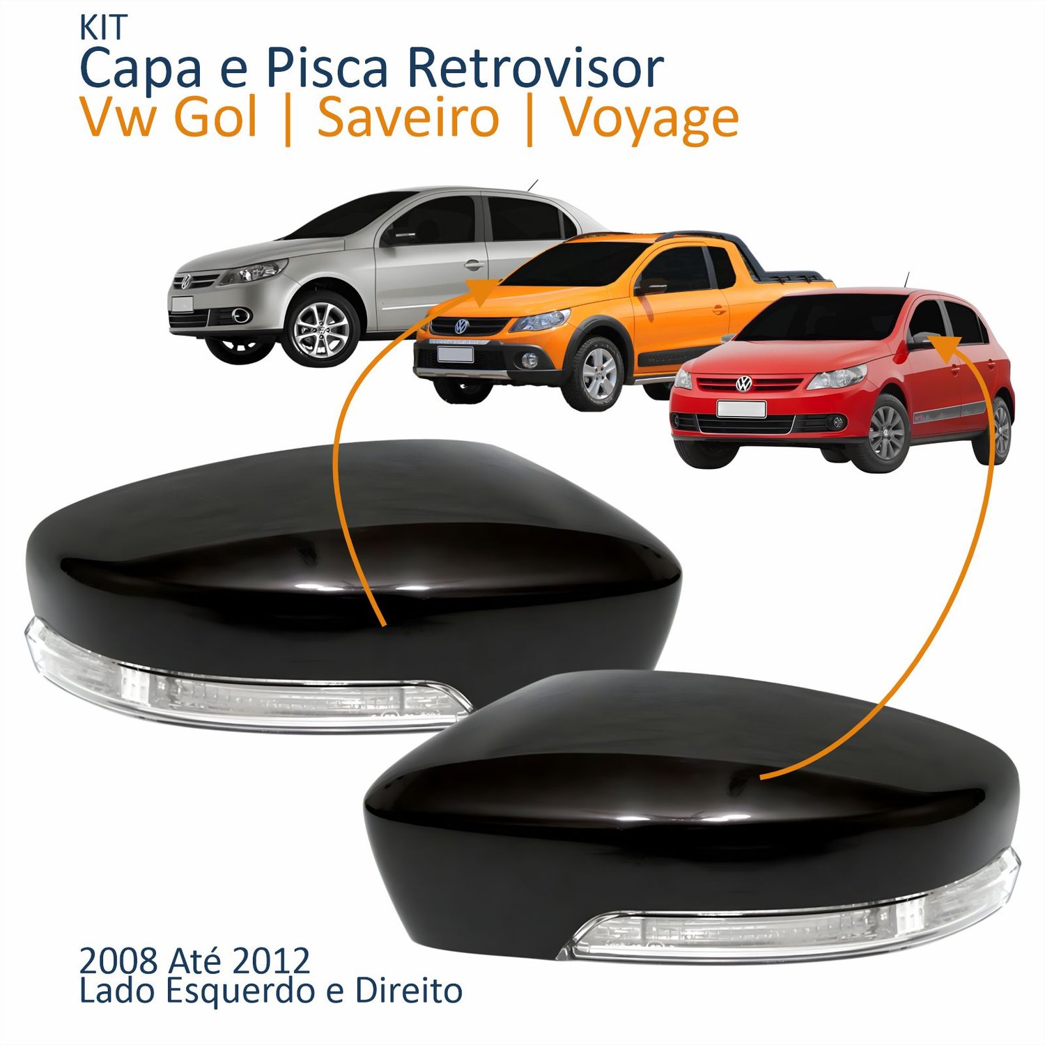 Kit Capa Com Pisca Retrovisor Vw Gol Saveiro Voyage G6 2008 2009 2010 2011 2012 Liso