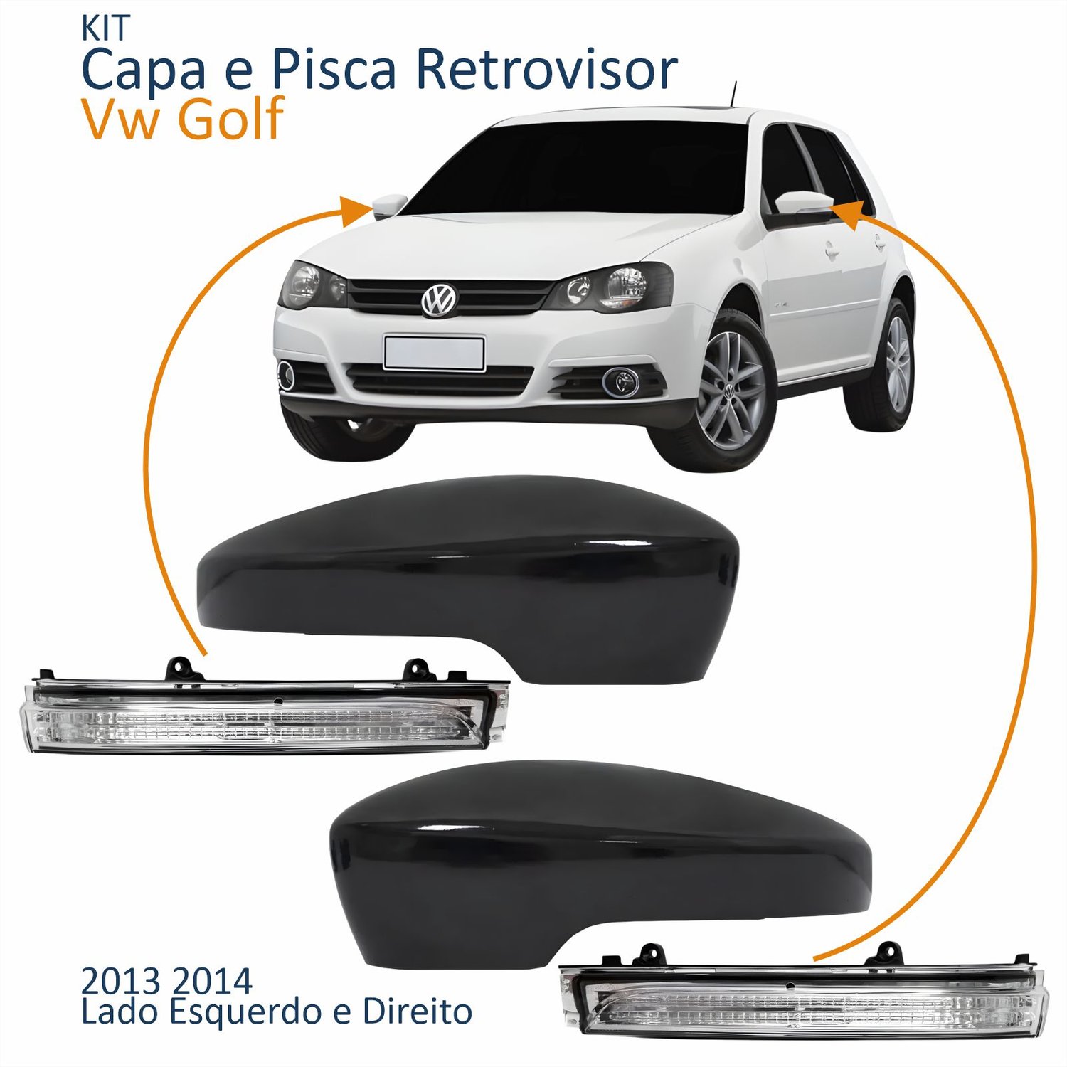 Kit Capa Com Pisca Retrovisor Vw Golf 2013 2014 Liso