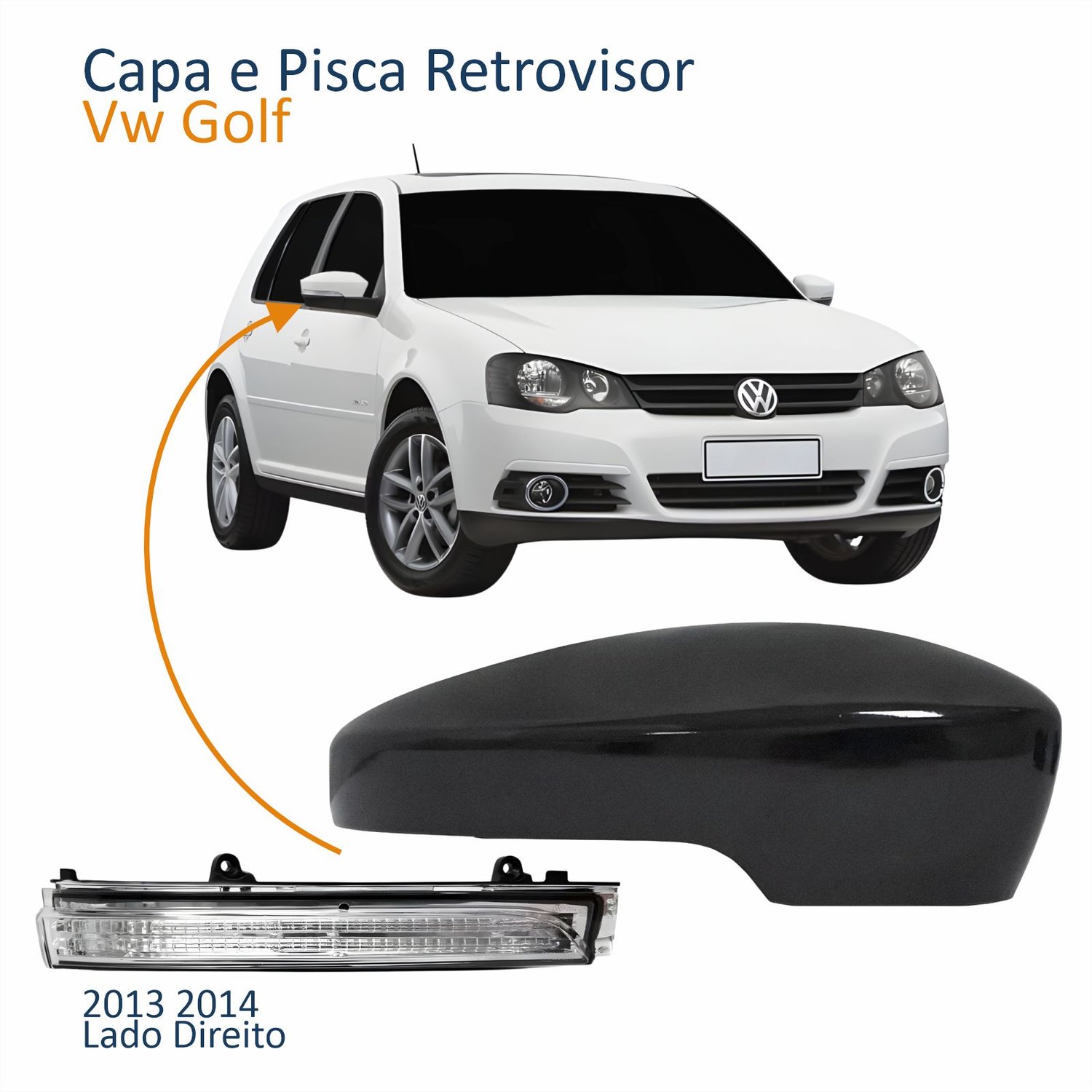 Kit Capa Com Pisca Retrovisor Vw Golf 2013 2014 Texturizado Lado Direito Passageiro
