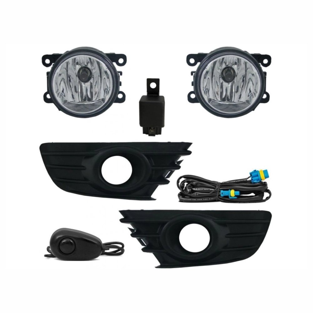 Kit Farol Auxiliar De Milha Citroen C4 Hatch 2006 Até 2012 Moldura Preta Botão Colante