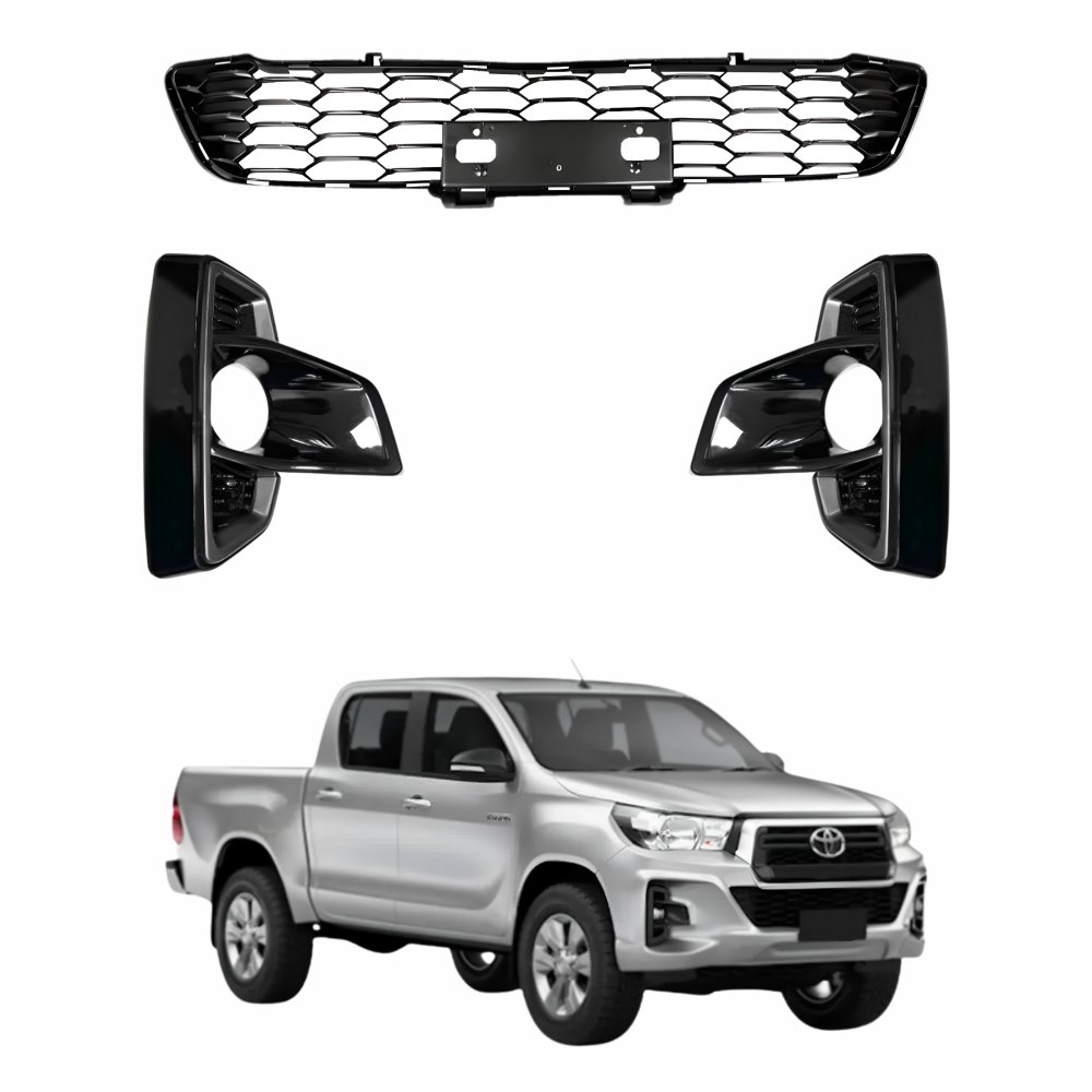 Kit Grade Parachoque Dianteiro Toyota Hilux Srv 2018 2019 2020 Central E Milha Black Piano