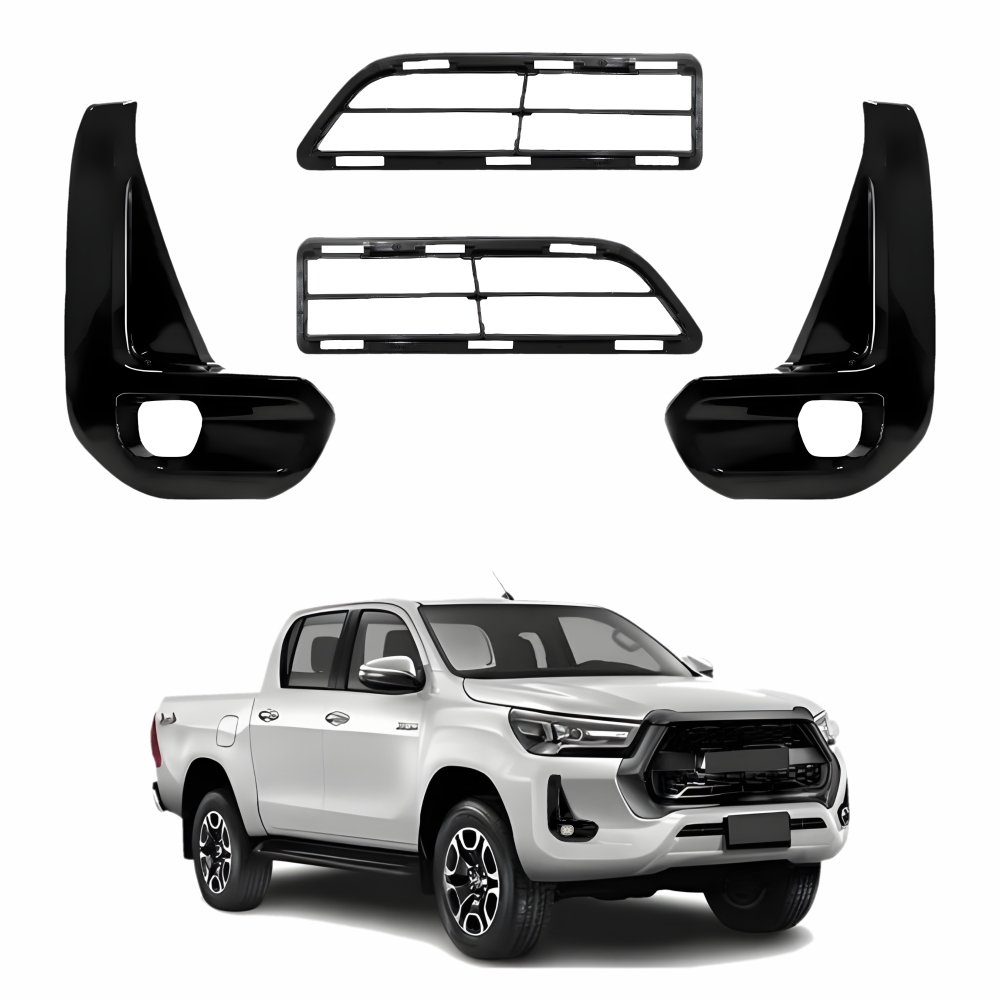 Kit Grade Parachoque Dianteiro Toyota Hilux Srv 2021 2022 2023 Central E Milha Black Piano