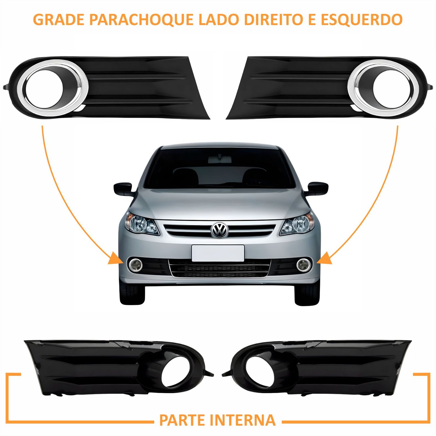 Kit Grades Parachoque Lado Direito e Lado Esquerdo + Par de Farol de Milha Vw Gol G5 2008 Até 2012
