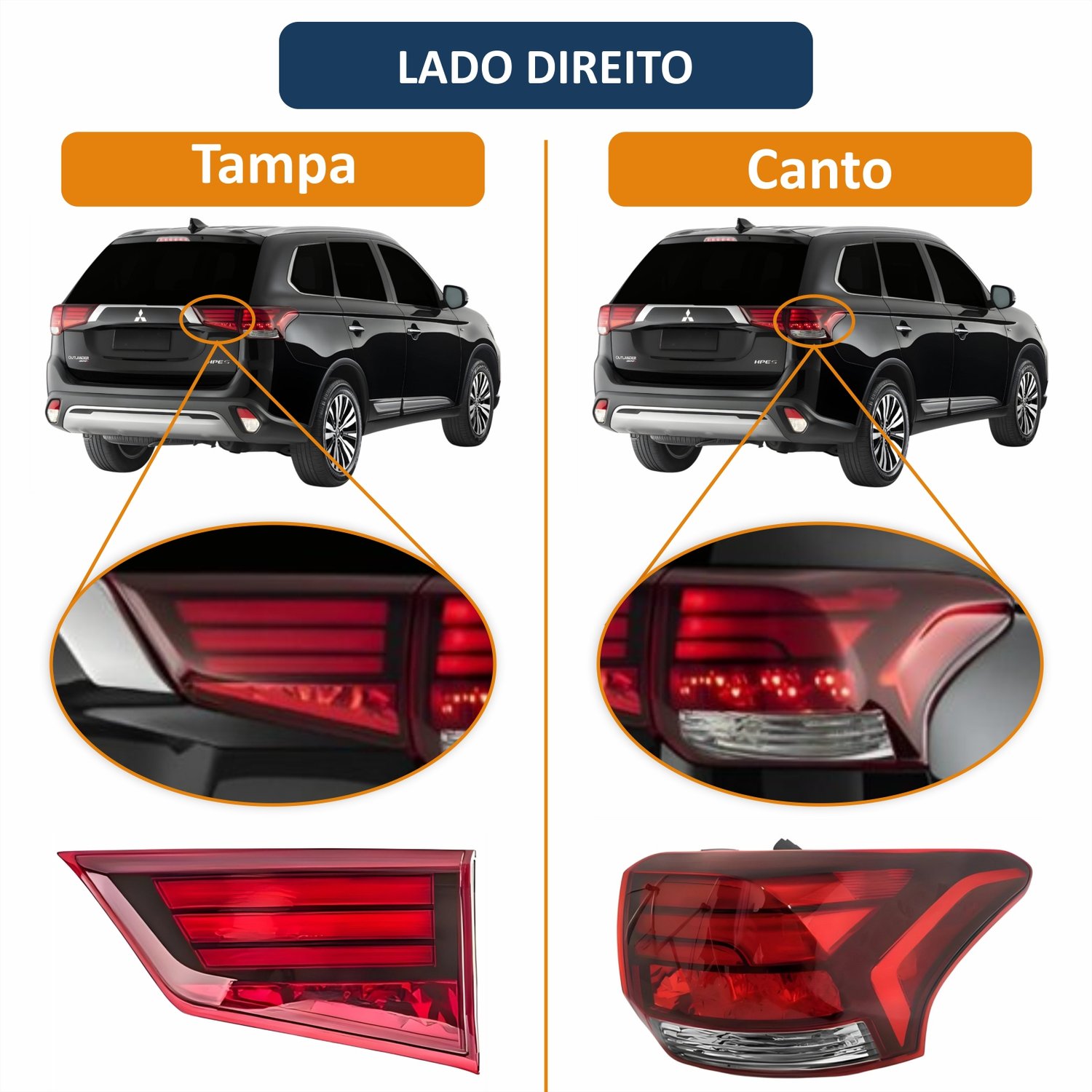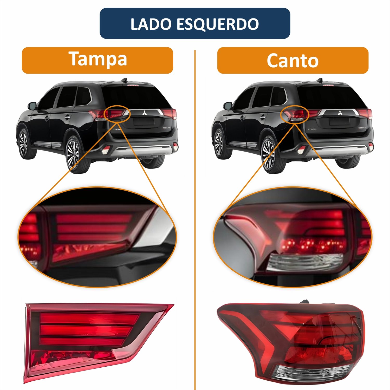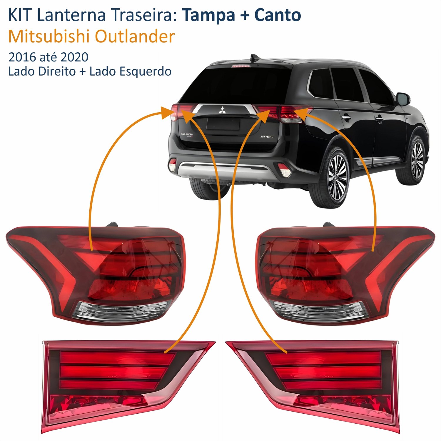 KIT Lanterna Traseira Mitsubishi Outlander 2016 Até 2020 Tampa + Canto Lado Direito Passageiro e Lado Esquerdo Motorista