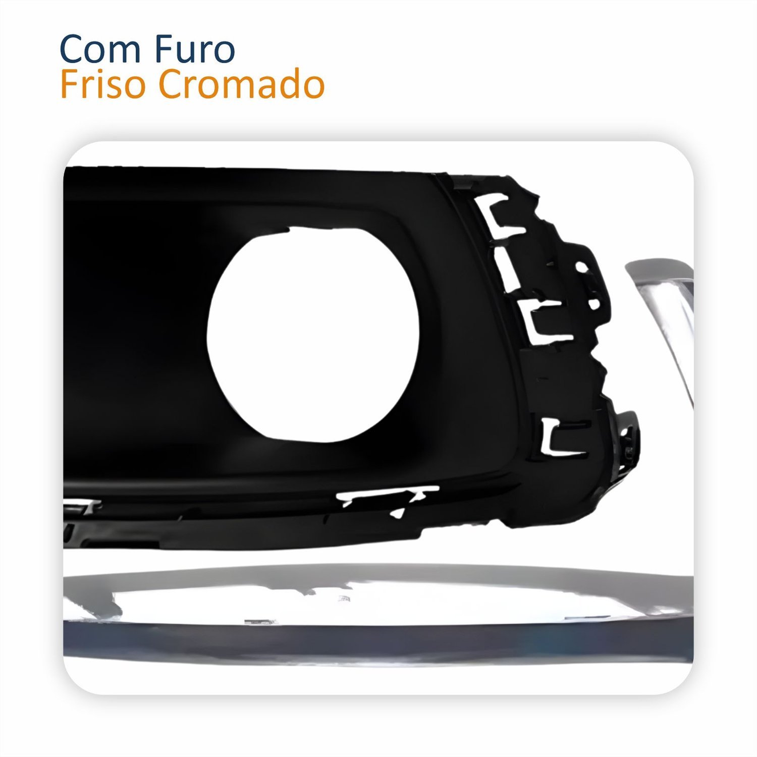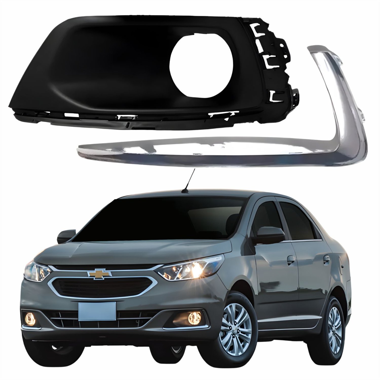 Kit Moldura Grade Farol Auxiliar Gm Cobalt 2016 2017 2018 2019 2020 Com Furo Friso Cromado Lado Esquerdo Motorista