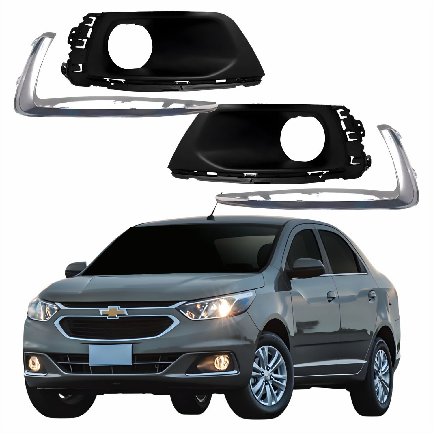 Kit Moldura Grade Farol Auxiliar Gm Cobalt 2016 2017 2018 2019 2020 Com Furo Friso Cromado