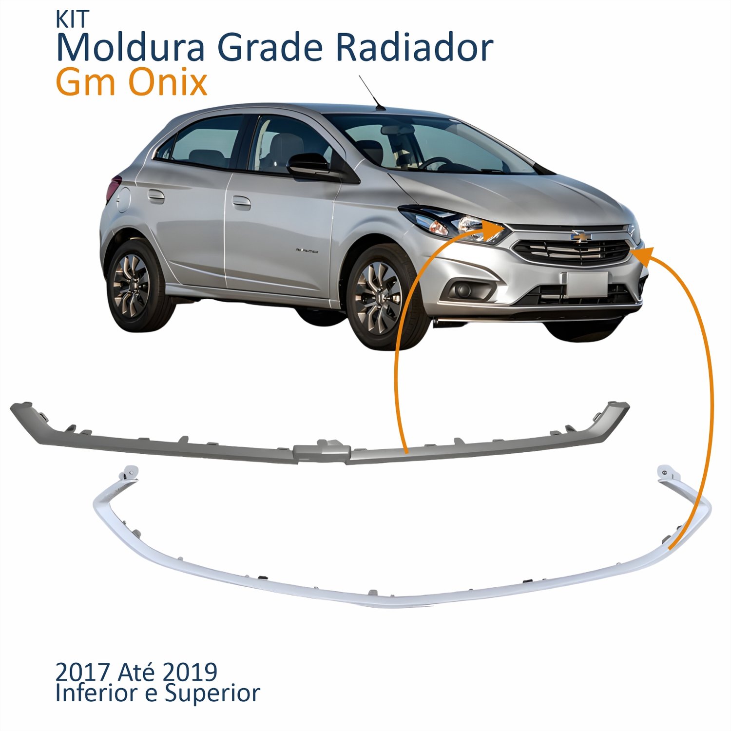 Kit Moldura Grade Radiador Gm Onix 2017 2018 2019 Inferior Superior Cinza