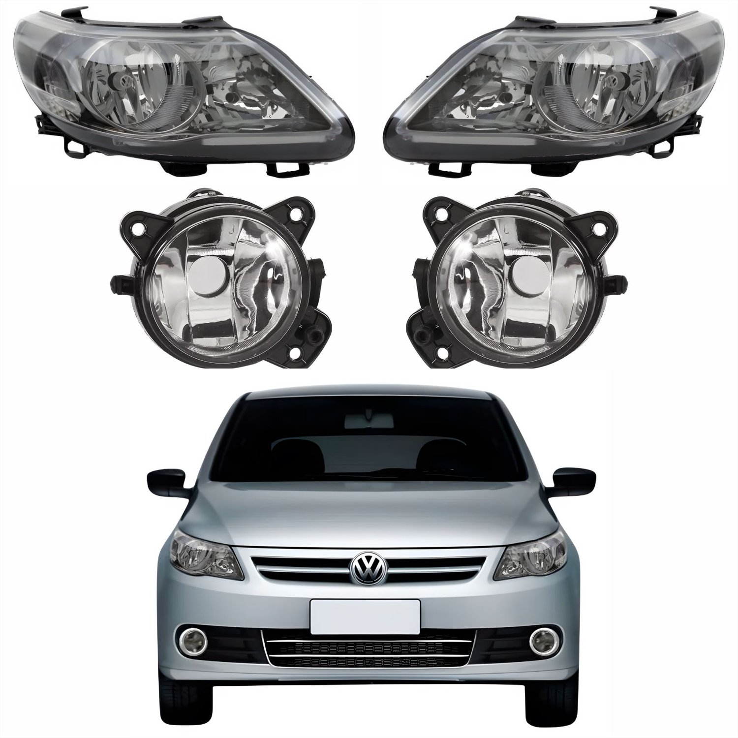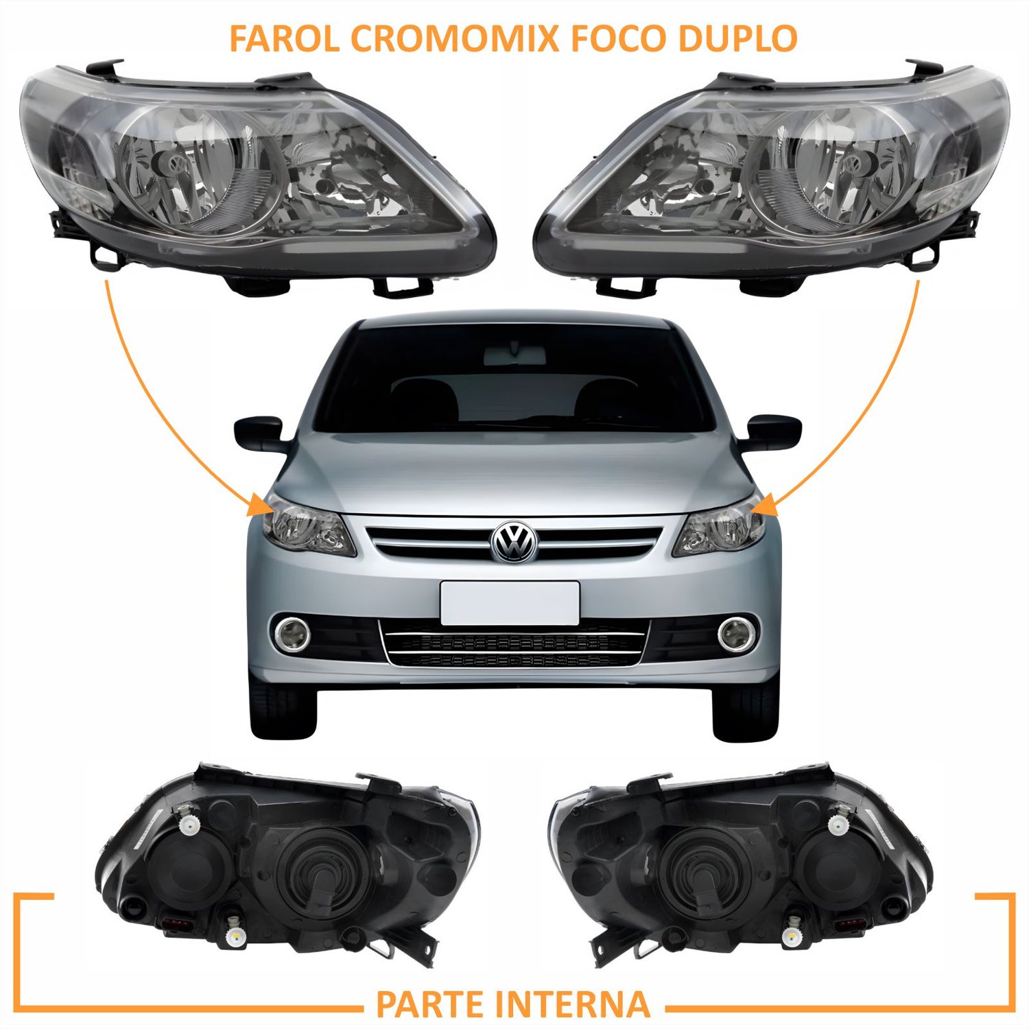 Kit Par de Farol Cromomix Foco Duplo + Par de Farol de Milha Vw Gol G5 2008 Até 2012