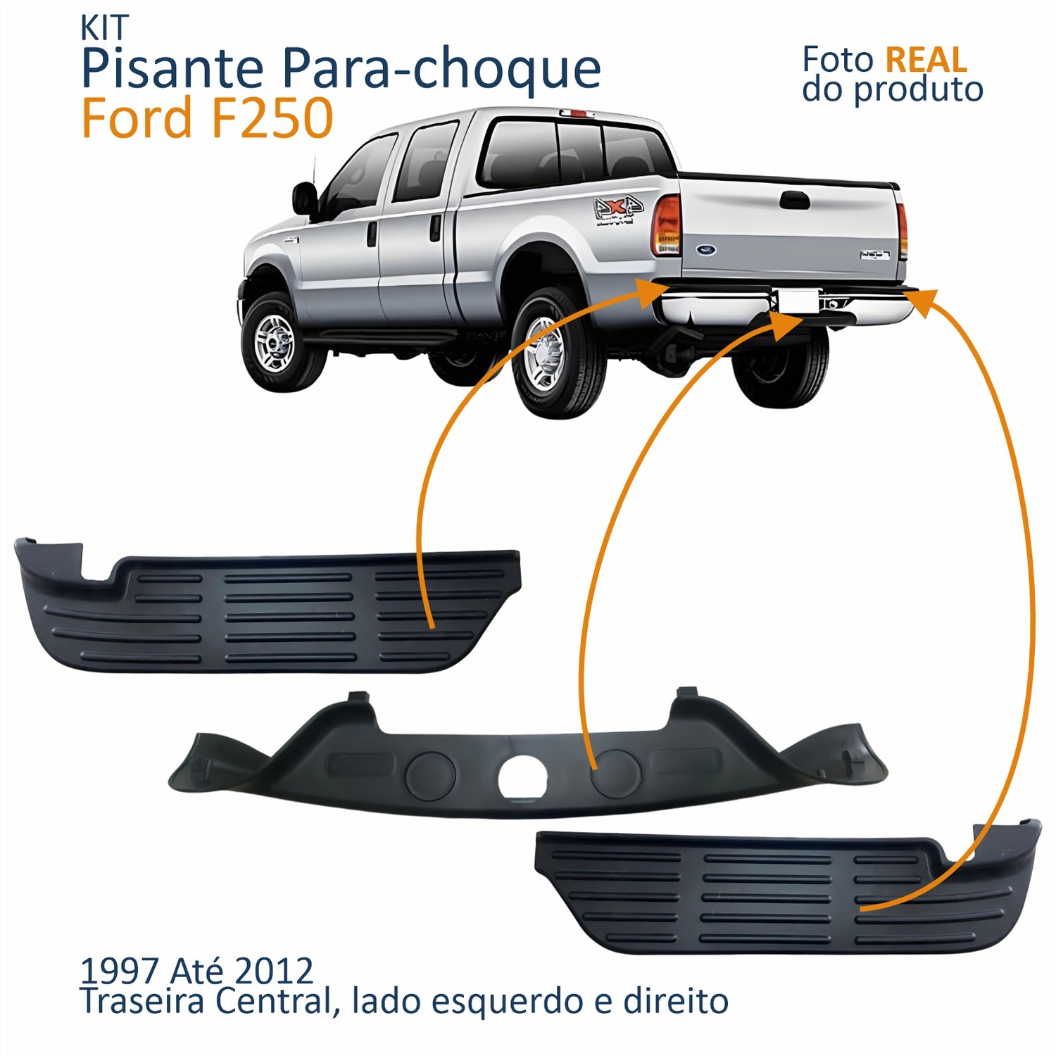 Pisante Para-choque Ford F250 1997 Até 2012 Traseira CentralLado: ÚnicoPisante Para-choque Traseiro Ford F250 1997 Até 2012 Lado Direito PassageiroLado: ÚnicoPisante Para-choque Traseiro Ford F250 1997 Até 2012 Lado Esquerdo MotoristaLado: Único