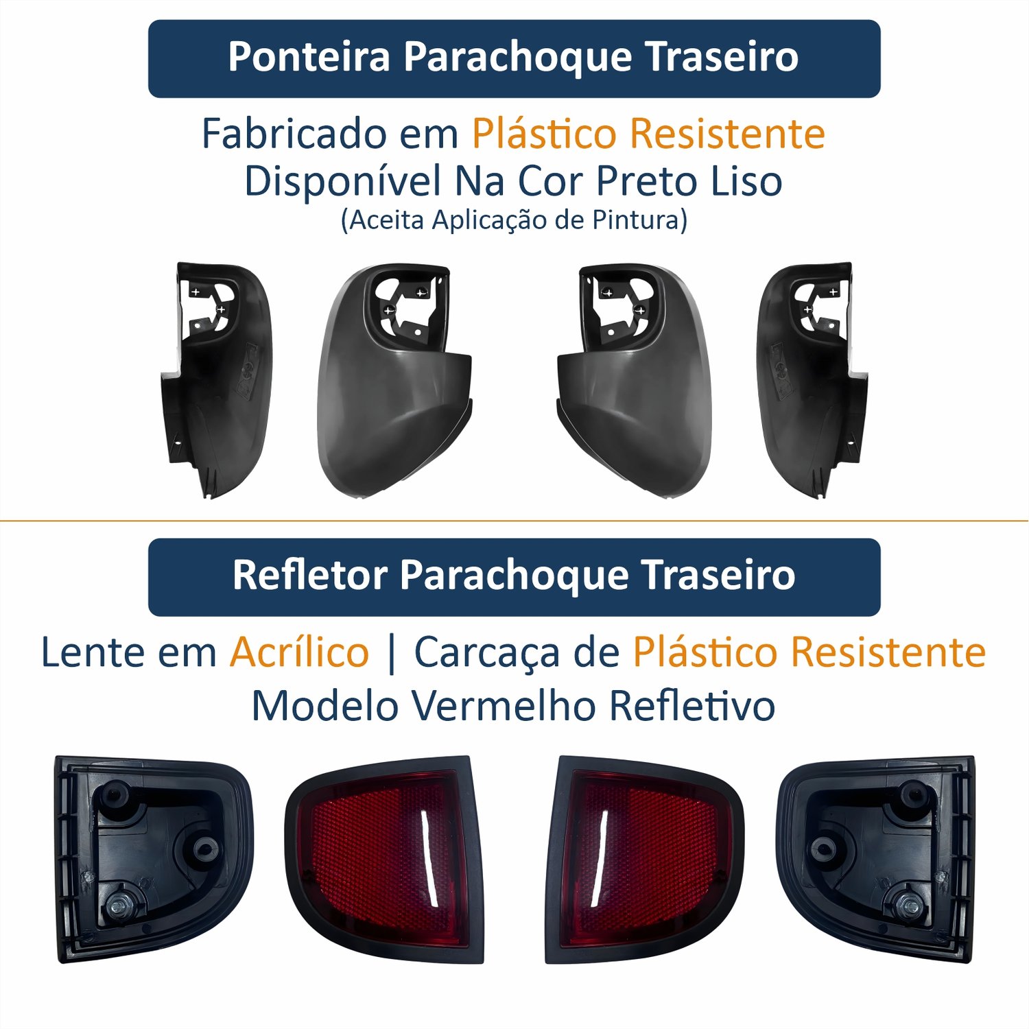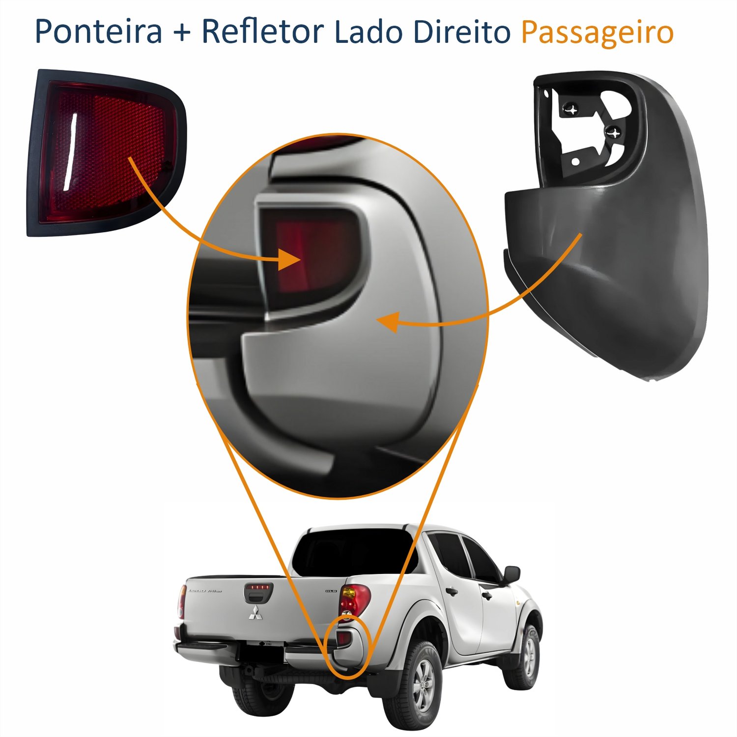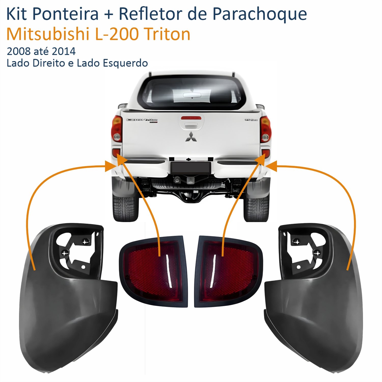 Kit Ponteira + Refletor do Parachoque Traseiro Mitsubishi L-200 Triton 2008 Até 2014 Lado Direito Passageiro e Lado Esquerdo Motorista