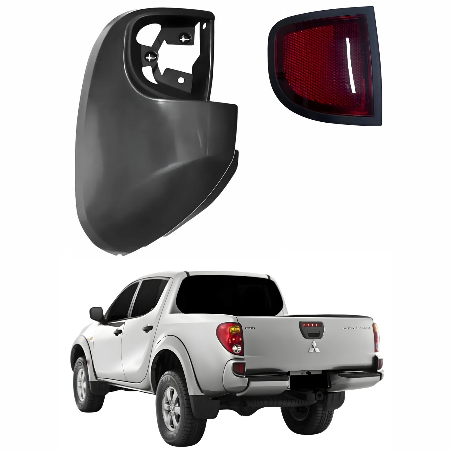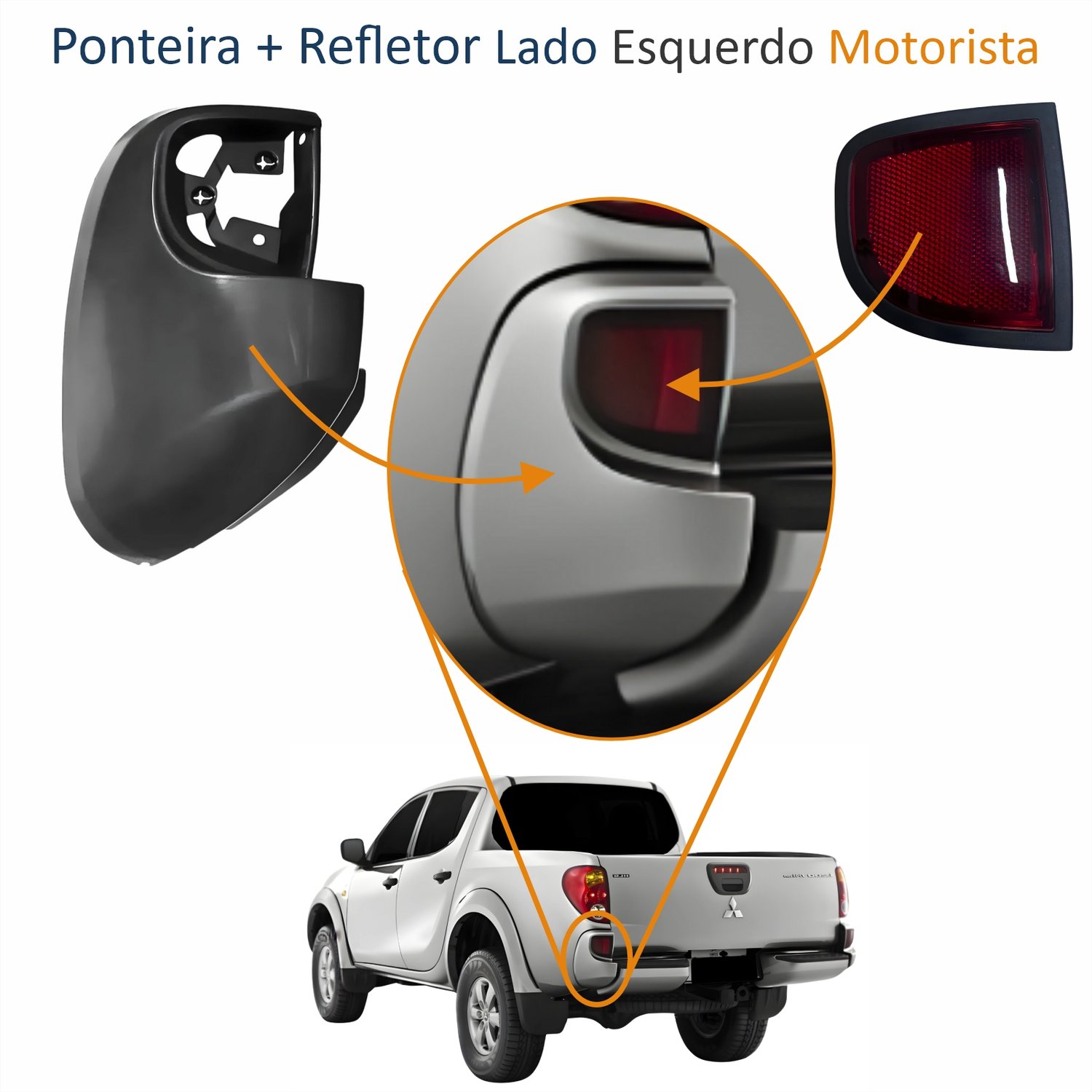 Kit Ponteira + Refletor do Parachoque Traseiro Mitsubishi L-200 Triton 2008 Até 2014 Lado Esquerdo Motorista