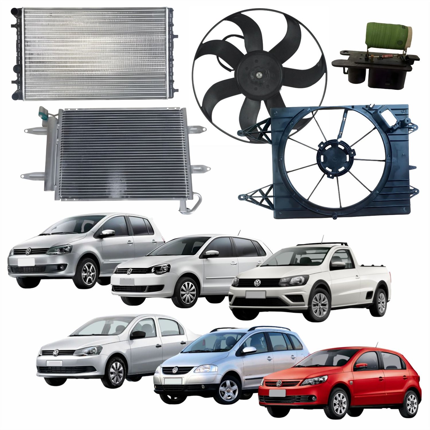 Radiador Vw Gol Voyage Saveiro 2009 Até 2023 Fox Spacefox Polo 2006 Até 2018 Com Ar Condicionado Mecânico Quant: 1xDefletor Ventoinha Vw Fox Spacefox Polo 2006 Até 2012 Gol Voyage Saveiro 2009 Até 2021 Com Ar Condicionado Original Quant: 1xEletroventilador Vw Gol Voyage Saveiro 2009 Até 2023 Fox Spacefox Polo 2006 Até 2023 Com Ar Quant: 1xCondensador Vw Gol Voyage Saveiro 2009 Até 2023 Fox 2011 Até 2014 Polo 2002 Até 2015 Quant: 1xResistência Eletroventilador Vw Fox Crossfox Spacefox Polo 2006 Até 2012 Gol Voyage Saveiro 2009 Até 2021 Com Ar Condicionado Quant: 1x