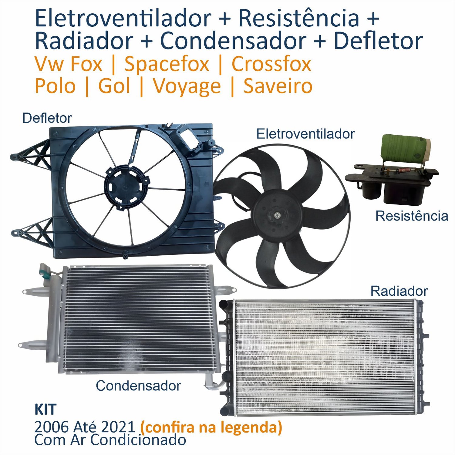 Kit Radiador Vw Fox Spacefox Polo 2006 Até 2012 Gol Voyage Saveiro 2009 Até 2021 Com Ar Condicionado