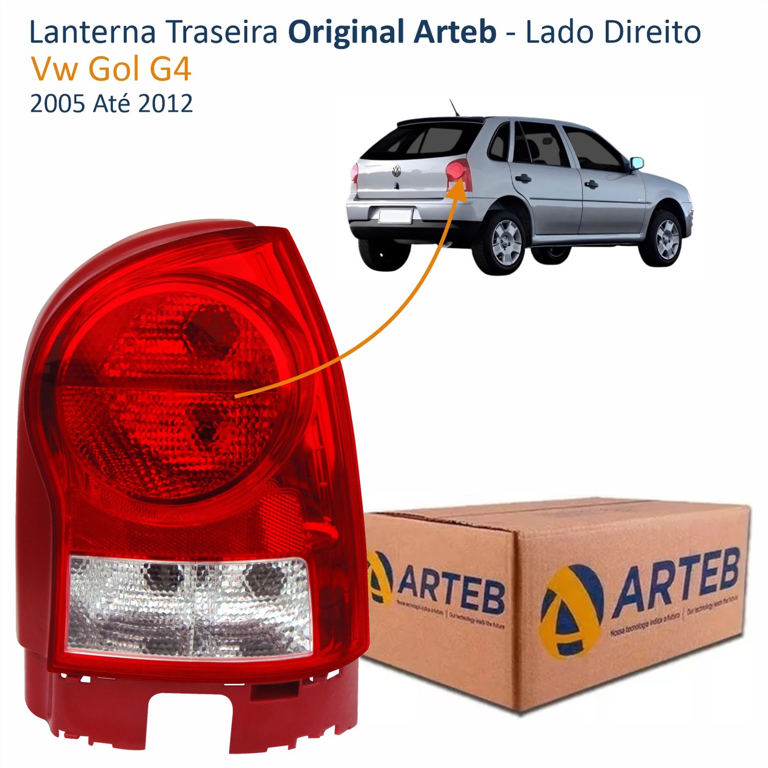 Lanterna Traseira Vw Gol G4 2005 Até 2012 Original Arteb Carcaça Vermelha Lado Direito Passageiro