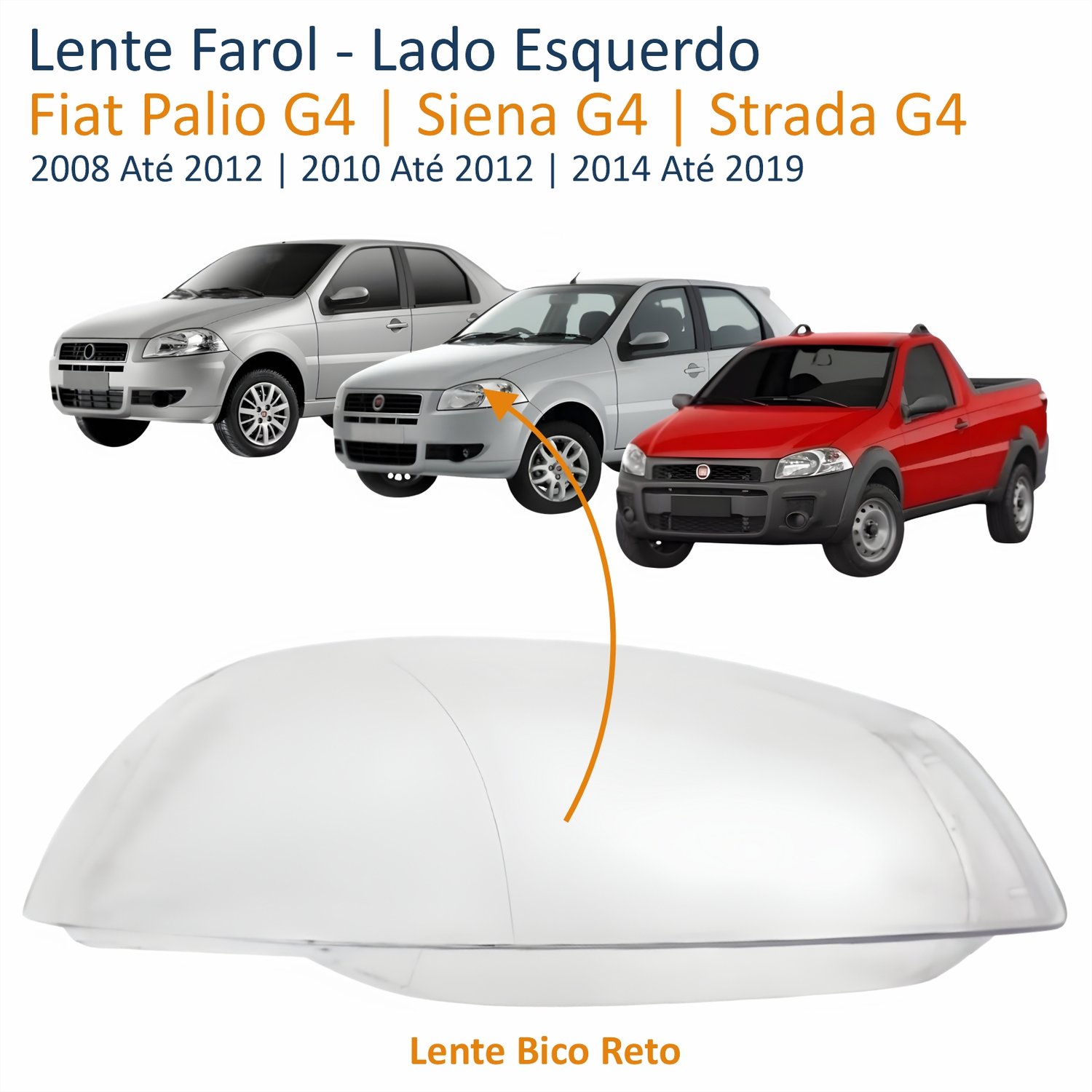 Lente Farol Fiat Palio G4 2008 Até 2012 Siena G4 2010 Até 2012 Strada G4 2014 Até 2019 Lado Esquerdo Motorista