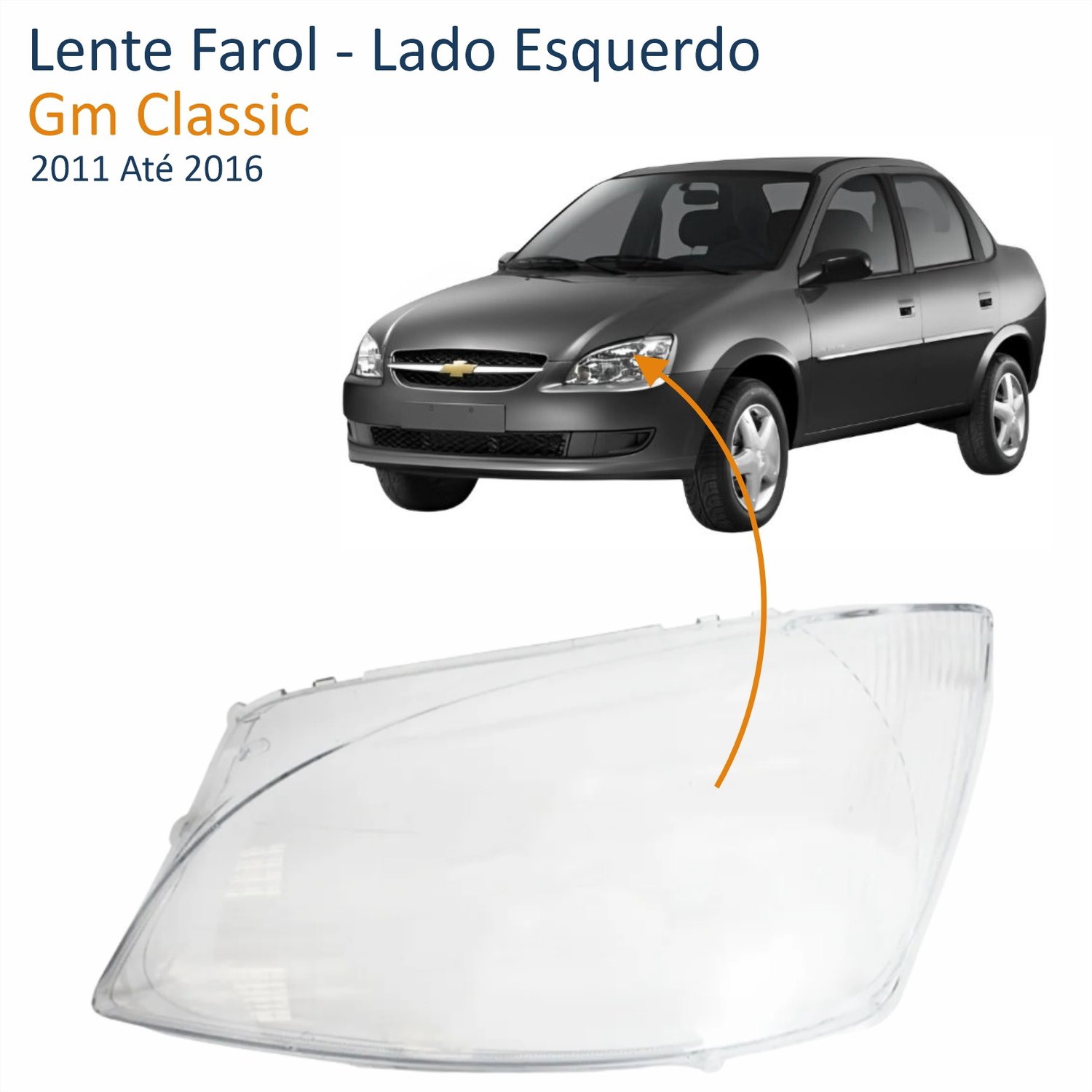 Lente Farol Gm Classic 2011 Até 2016 Lado Esquerdo Motorista