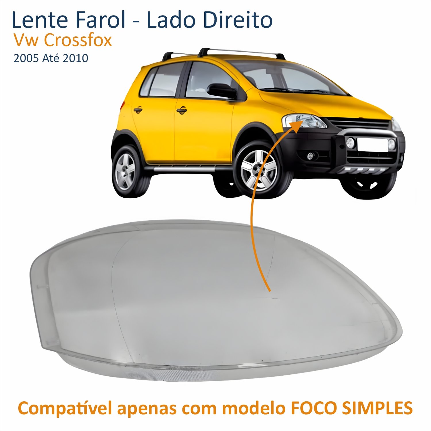 Lente Farol Vw Fox 2003 Até 2009 Crossfox 2005 Até 2010 Spacefox 2005 Até 2009 Simples Lado Direito PassageiroLado: Único