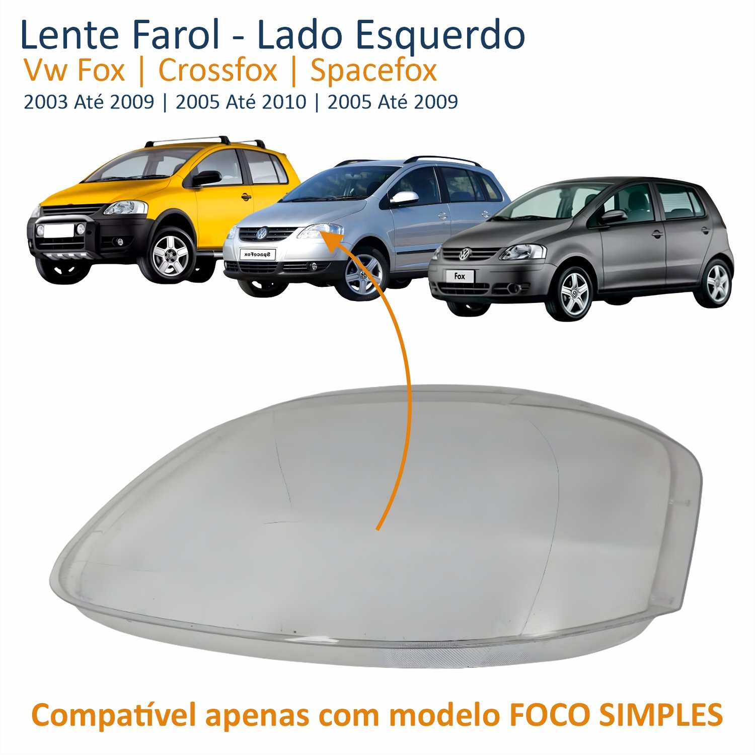 Lente Farol Vw Fox 2003 Até 2009 Crossfox 2005 Até 2010 Spacefox 2005 Até 2009 Simples Lado Esquerdo Motorista