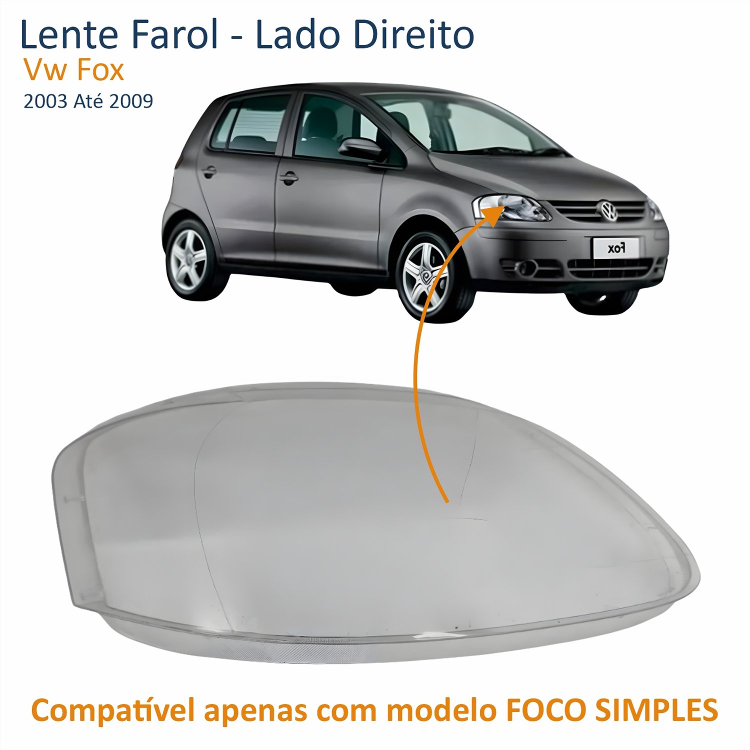 Lente Farol Vw Fox 2003 Até 2009 Crossfox 2005 Até 2010 Spacefox 2005 Até 2009 Simples Lado Direito PassageiroLado: Único