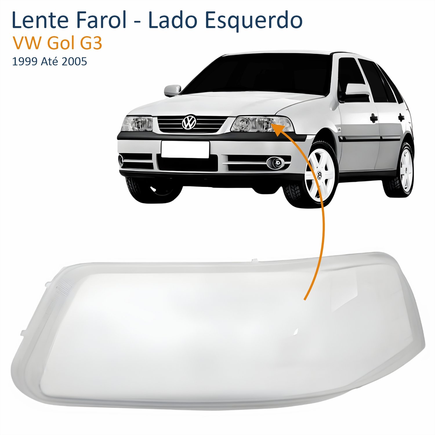 Lente Farol VW Gol G3 1999 Até 2005 Lado Esquerdo Motorista