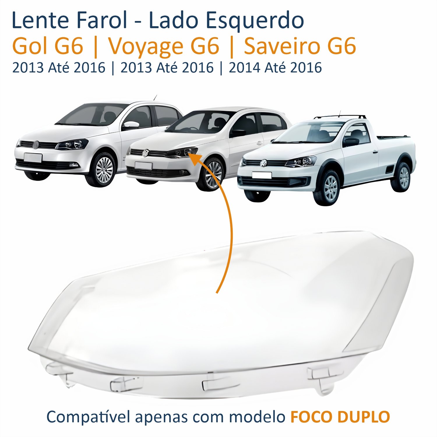 Lente Farol Vw Gol Voyage G6 2013 Até 2016 Saveiro G6 2014 Até 2016 Duplo Lado Esquerdo Motorista