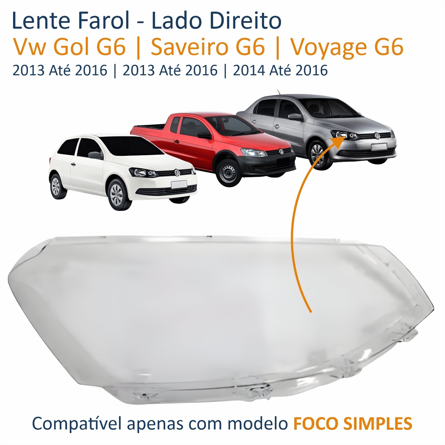 Lente Farol Vw Gol Voyage G6 2013 Até 2016 Saveiro G6 2014 Até 2016 Simples Lado Direito Passageiro