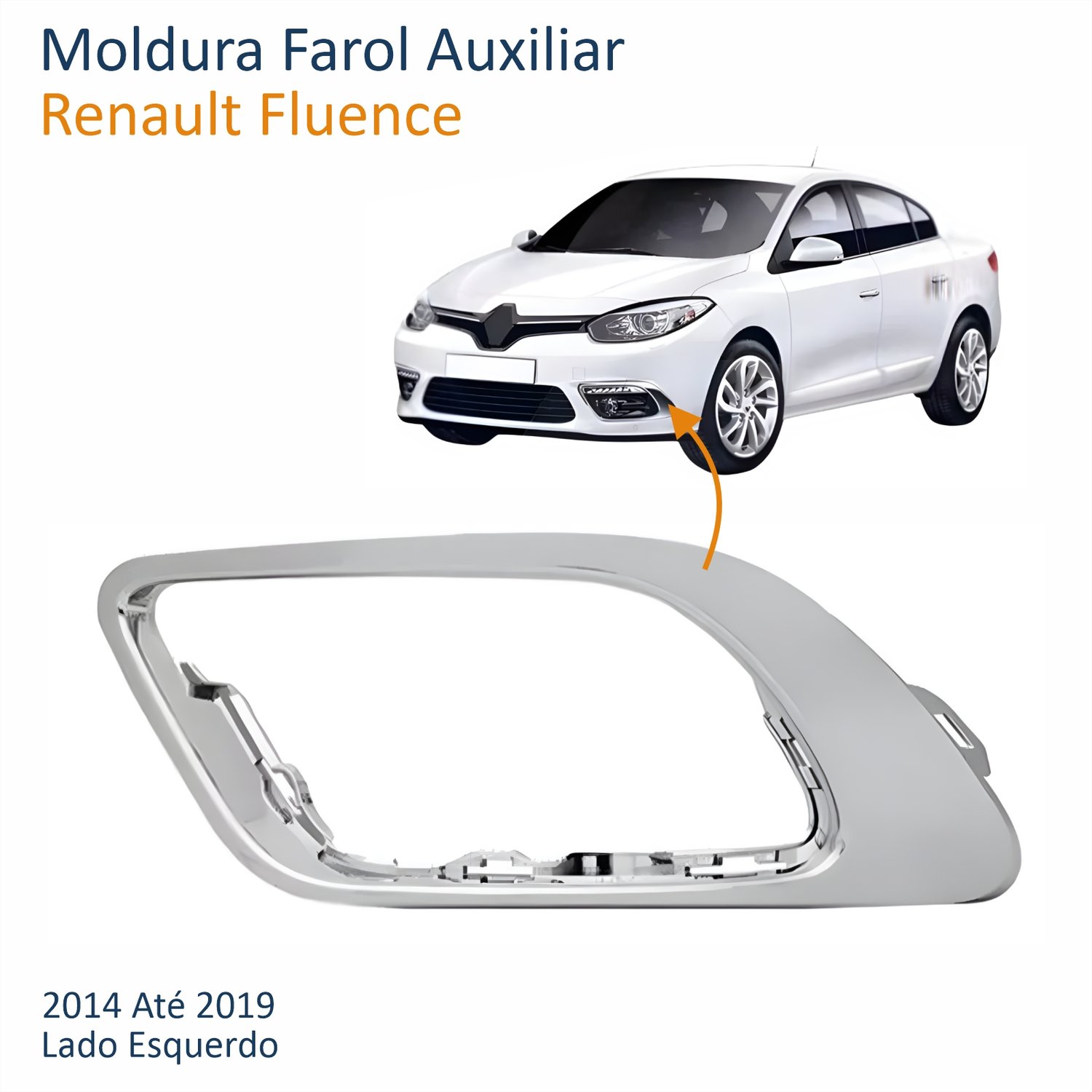 Moldura Farol Auxiliar Renault Fluence 2014 Até 2019 Cromado Lado Esquerdo Motorista