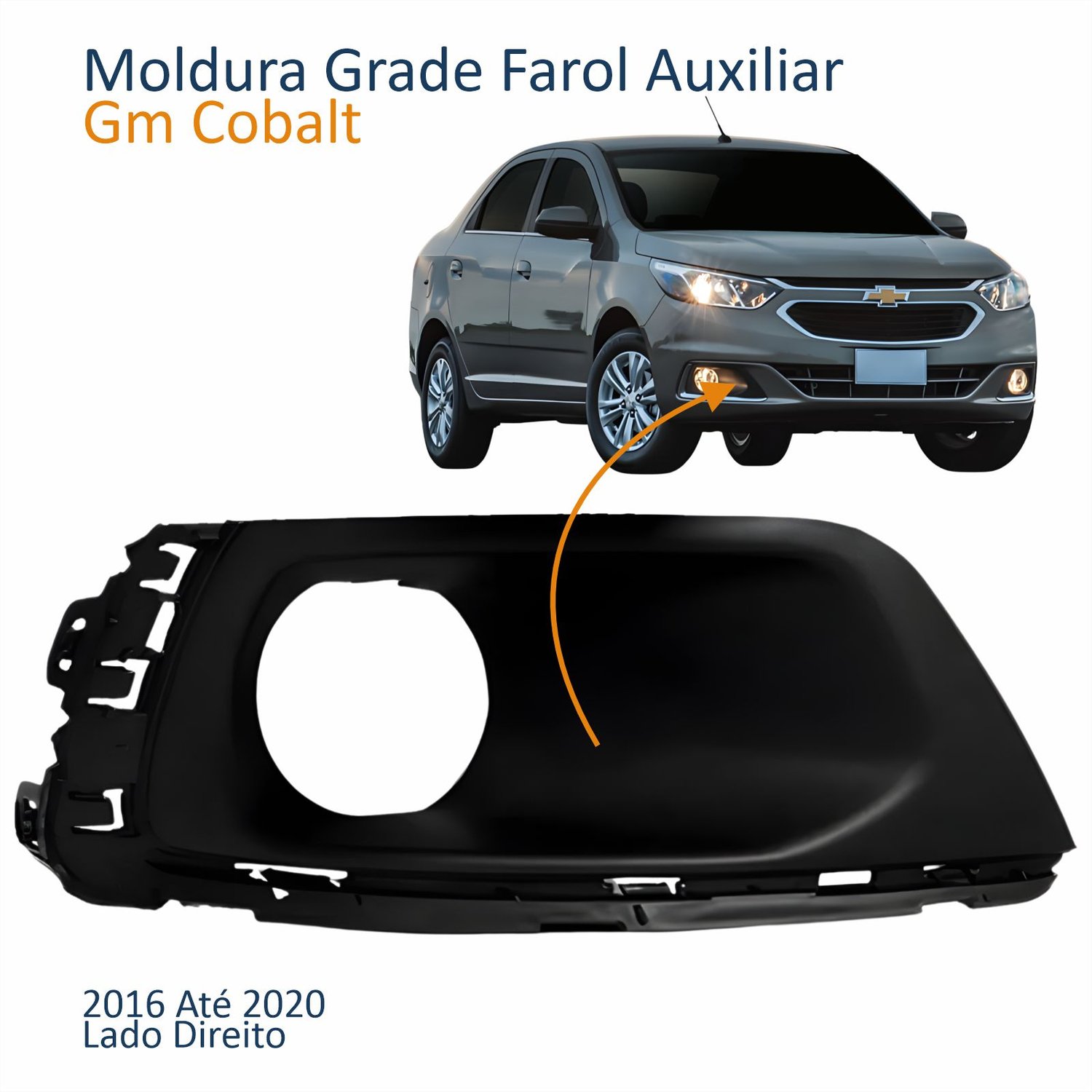 Moldura Grade Farol Auxiliar Gm Cobalt 2016 2017 2018 2019 2020 Com Furo Lado Direito Passageiro