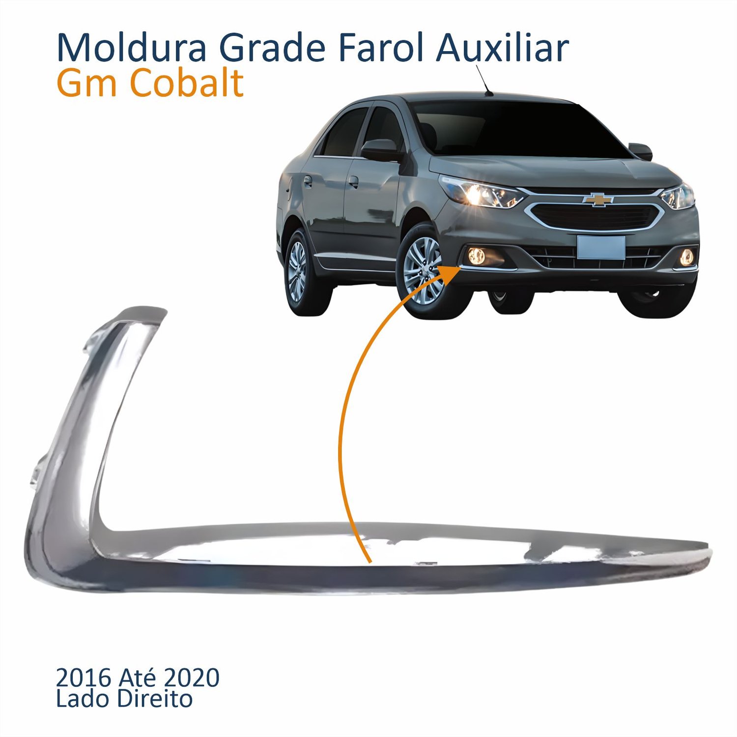 Moldura Grade Farol Auxiliar Gm Cobalt 2016 2017 2018 2019 2020 Friso Cromado Lado Direito Passageiro