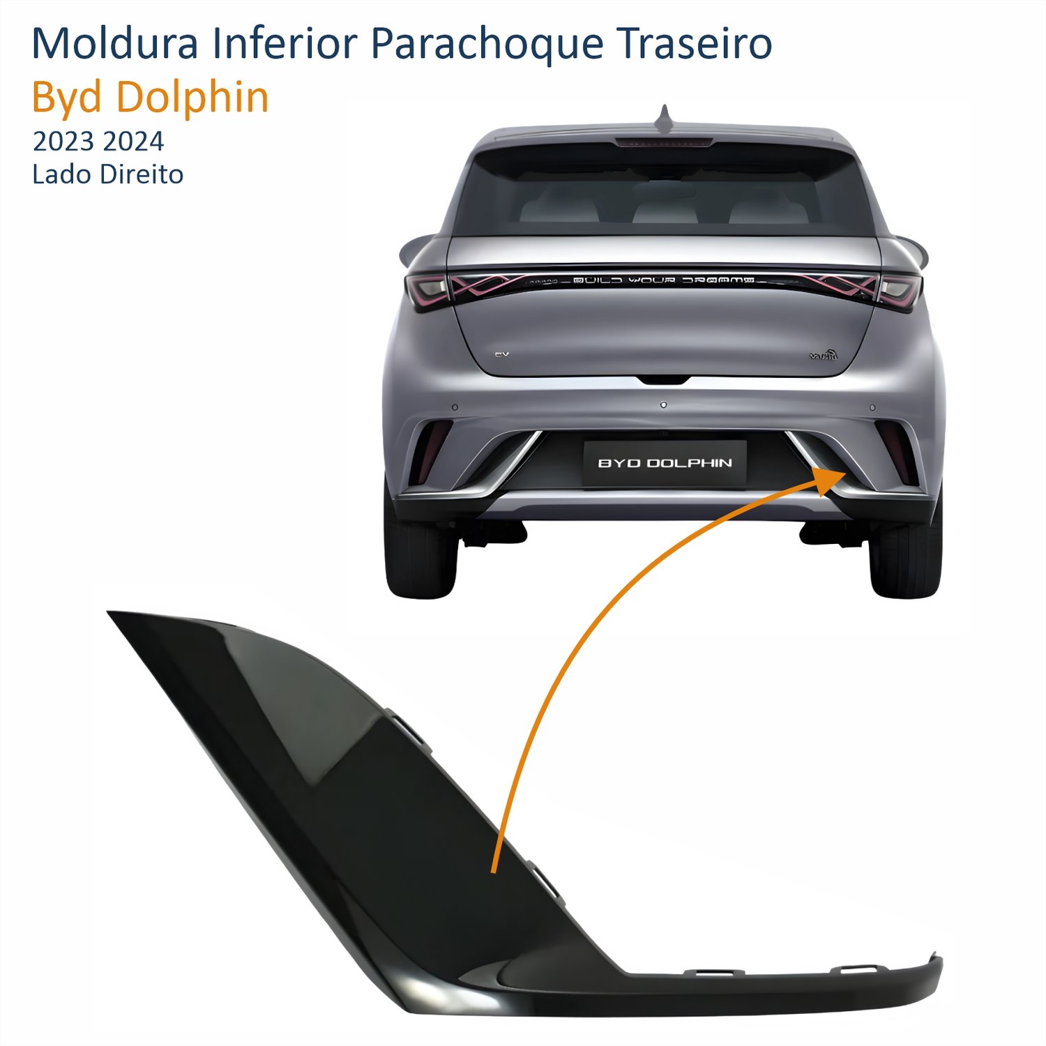 Moldura Inferior Parachoque Traseiro Byd Dolphin 2023 2024 Lado Direito Passageiro