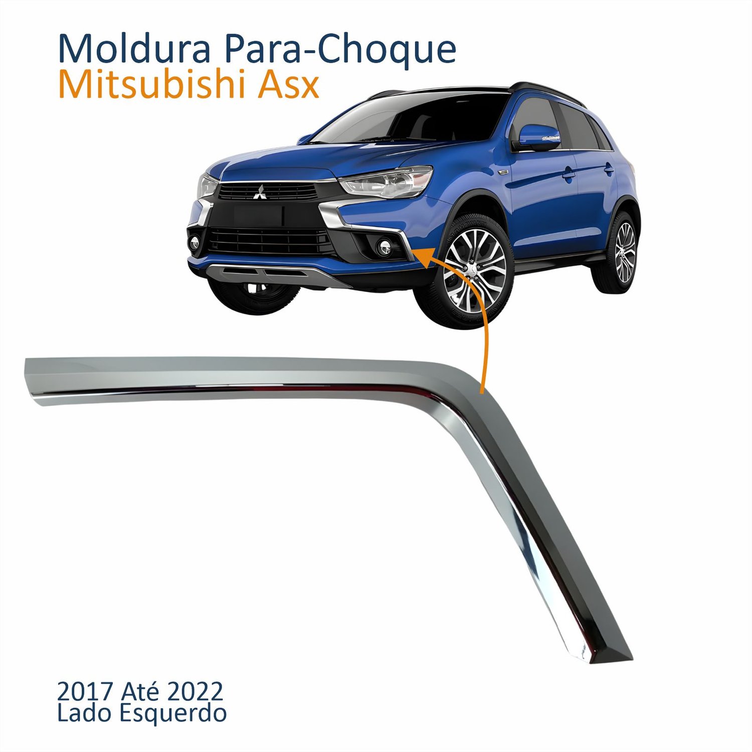 Moldura Parachoque Dianteiro Mitsubishi Asx 2017 Até 2022 Inferior Cromado Lado Esquerdo Motorista