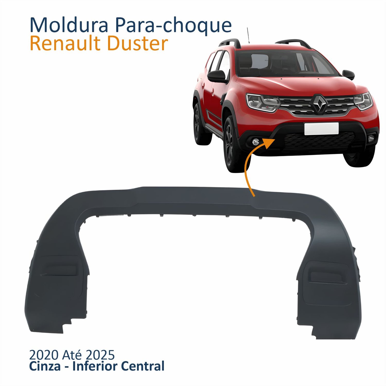 Moldura Parachoque Dianteiro Renault Duster 2020 Até 2025 Cinza Inferior Central