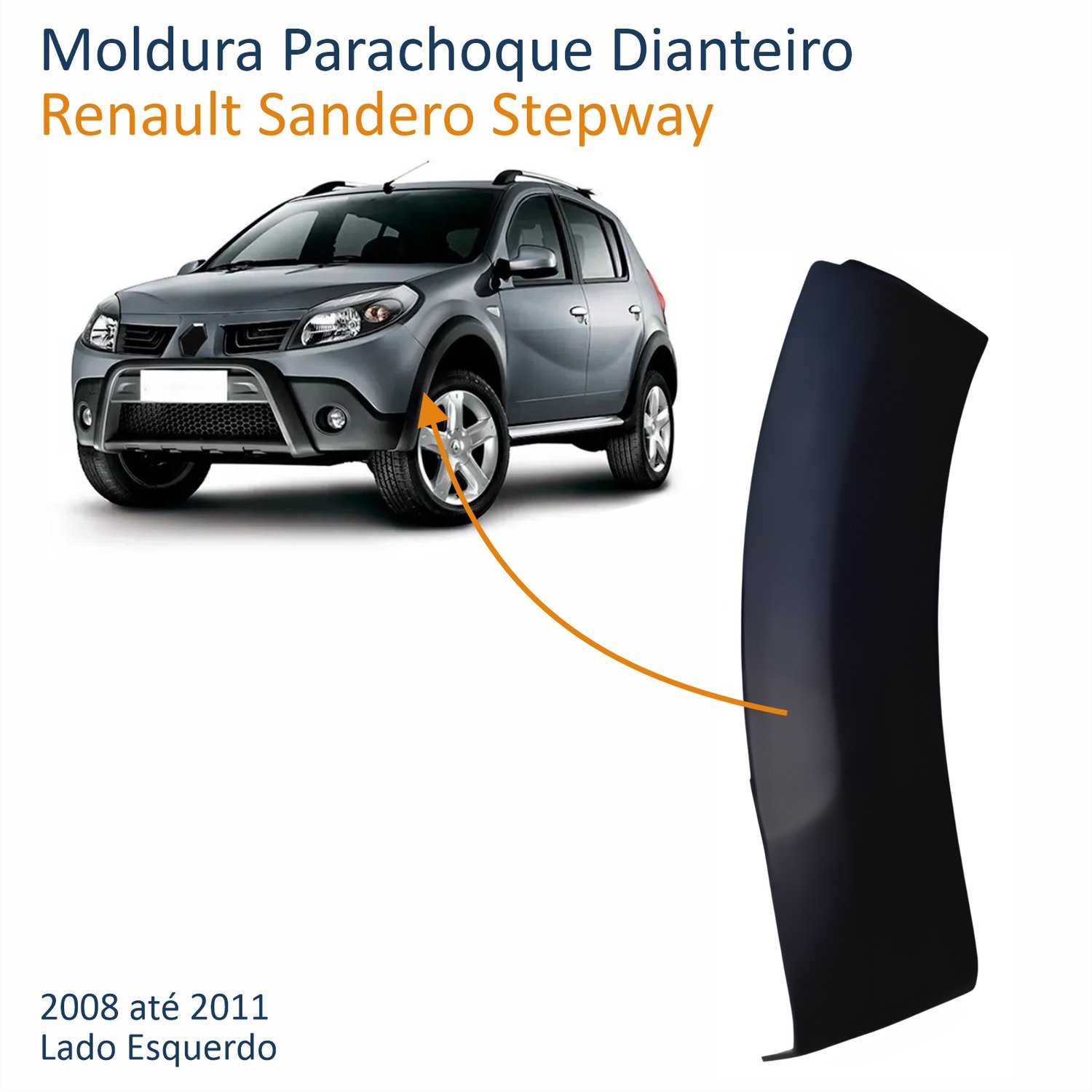 Moldura Parachoque Dianteiro Renault Sandero Stepway 2008 Até 2011 Lado Esquerdo Motorista