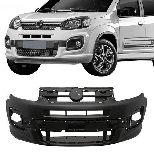 Parachoque Fiat Uno Vivace Sporting 2017 2018 2019 2020 Dianteiro Preto Liso com Furo para Milha