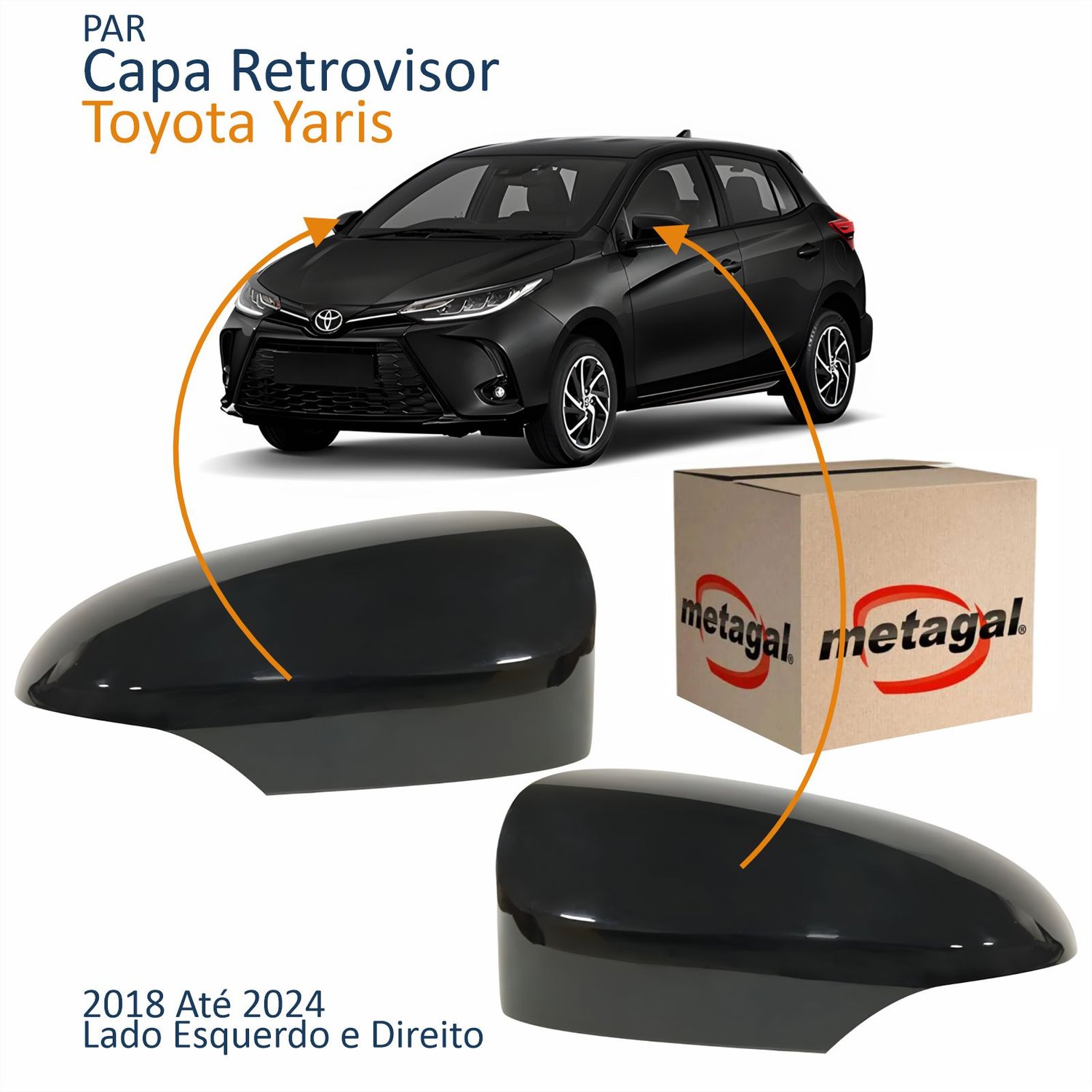 Capa Retrovisor Toyota Yaris 2018 Até 2024 Com Furo Liso Lado Esquerdo MotoristaLado: ÚnicoCapa Retrovisor Toyota Yaris 2018 Até 2024 Com Furo Liso Lado Direito PassageiroLado: Único