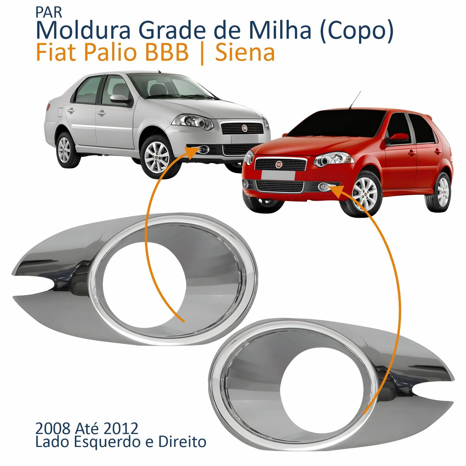 Par Copo Grade Milha Fiat Palio BBB Siena 2008 2009 2010 2011 2012 Cromado