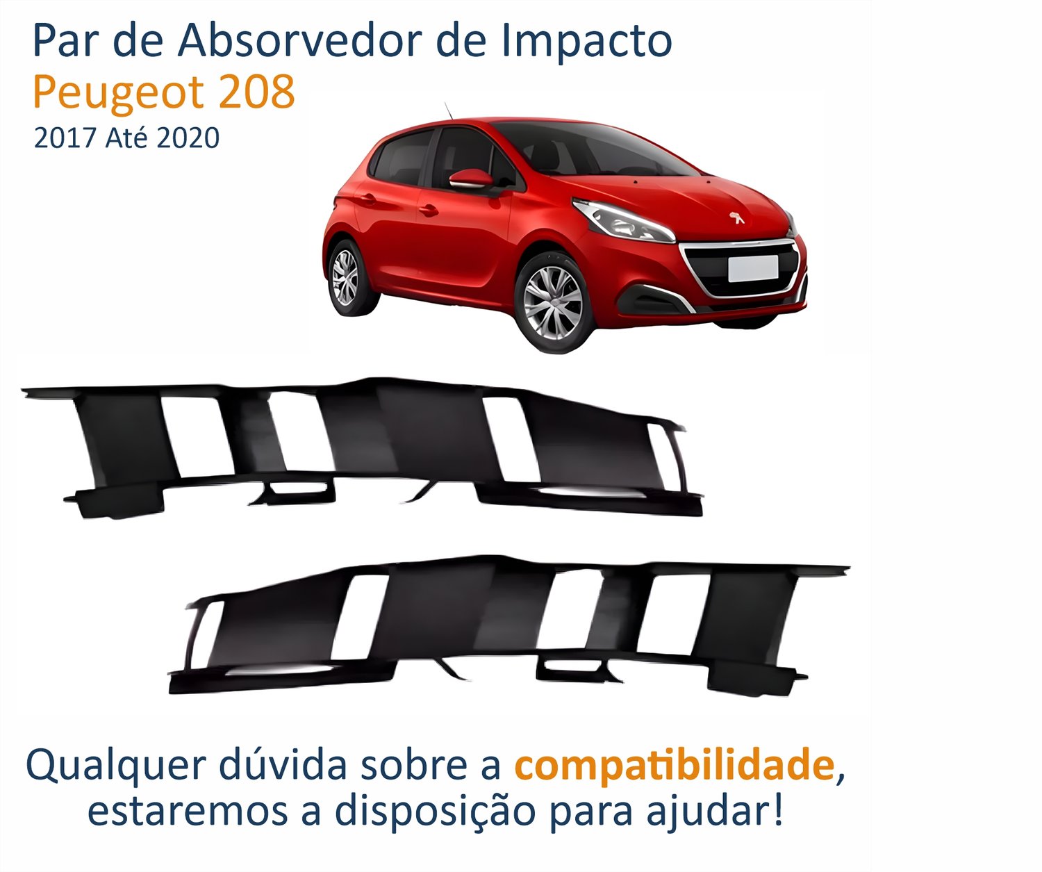 Par de Absorvedor Impacto Peugeot 208 2017 Até 2020 Superior Dianteiro