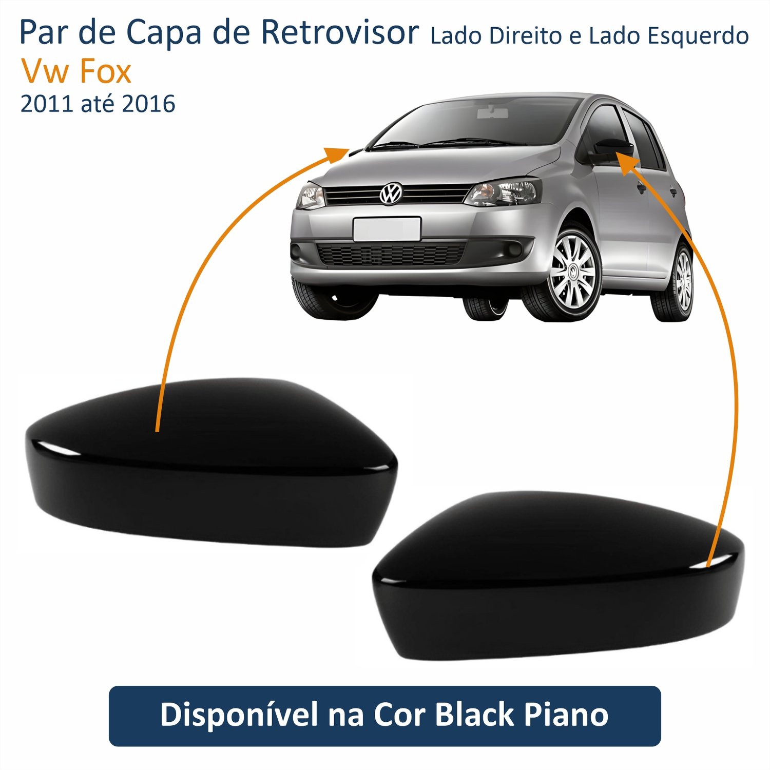 Par de Capa de Retrovisor Vw Fox 2011 até 2016 Black Piano